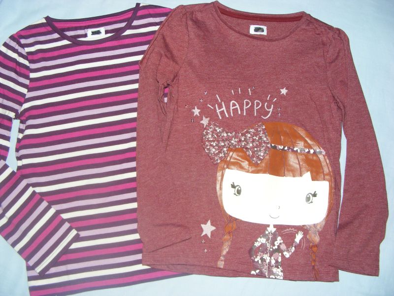 2x tričko zn. F&F - prúžkavé a s dievčatkom. Materiál 100% bavlna.
