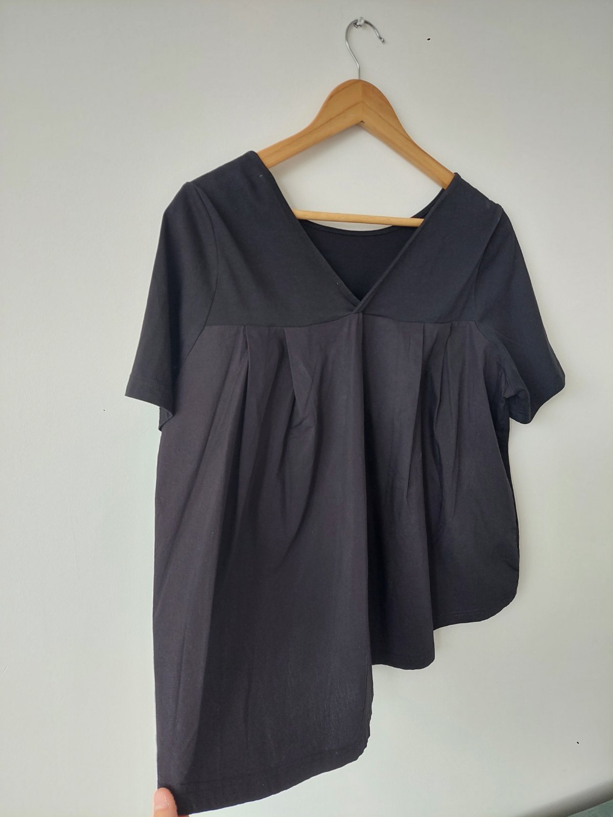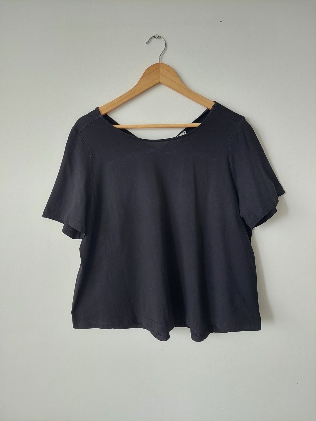 1x oblečené. Vypratý zažltnutý efekt, obrázky od novoti popraskané. Písané XS, ale také akurát S, lebo je dosť široké. Šp paz 51, dĺžka 60