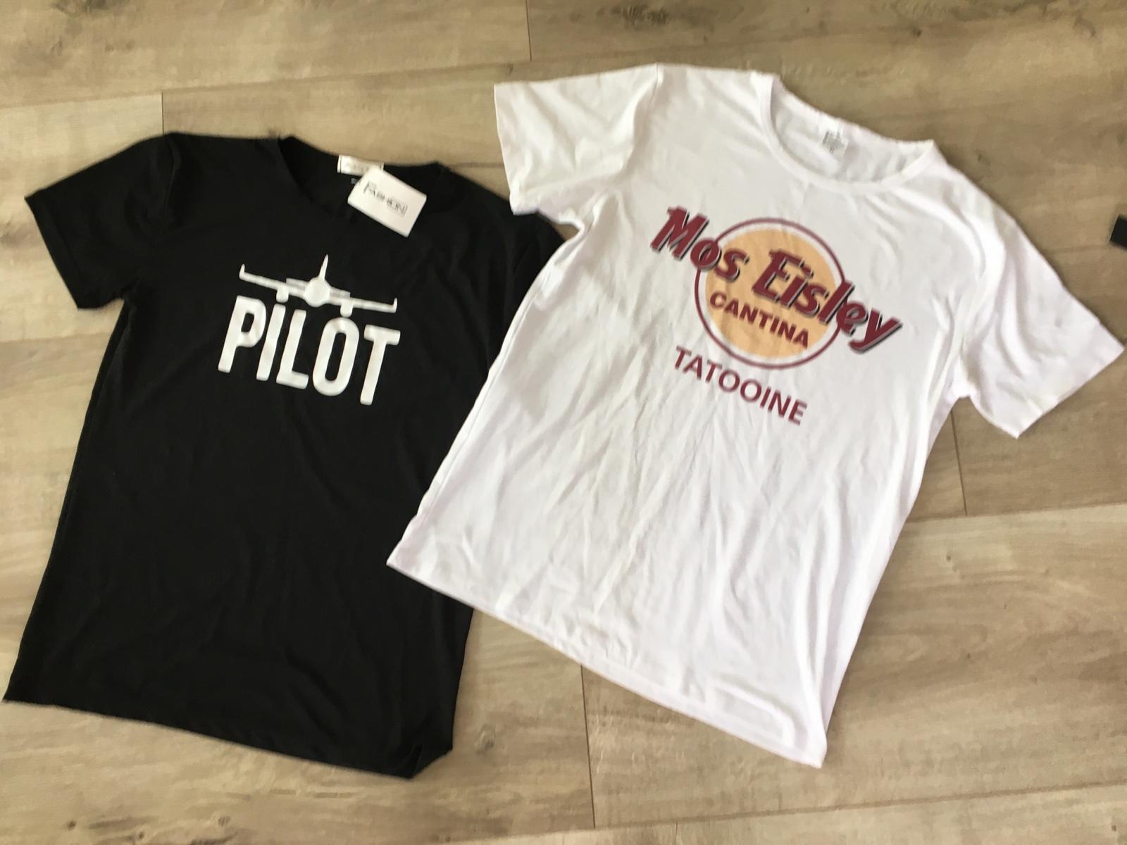 Nové trička objednané z Aliexpresu, nesadla veľkosť, sedia skôr ako S alebo menšie M, 3€/ks