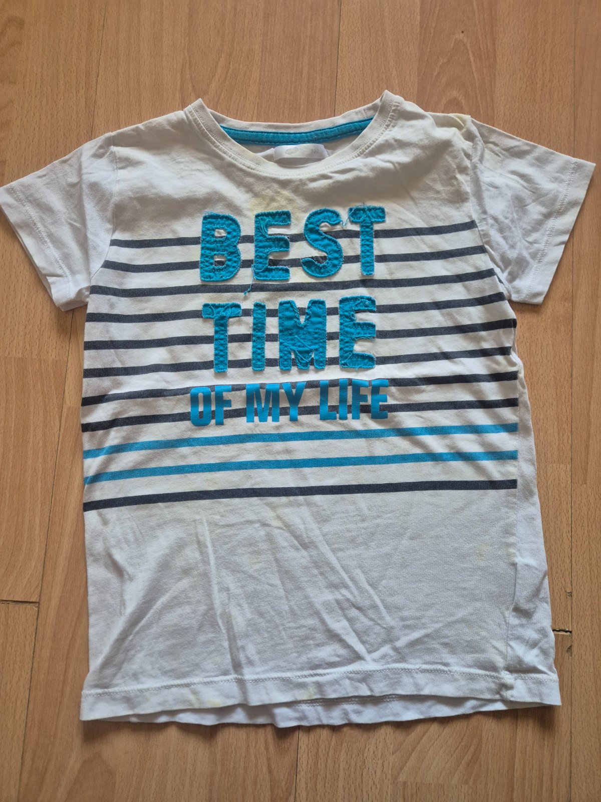 Darujem k nákupu biele tričko s nápisom je sem tam nanom žltý fľak,veľ.122,značka Pepco