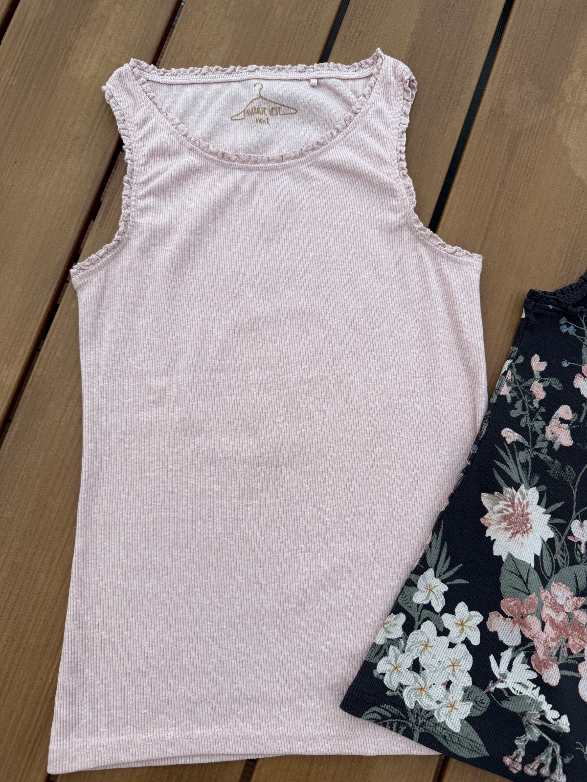 Krásne rebrované tielka s azurkou na priekrcniku a prieramkoch.