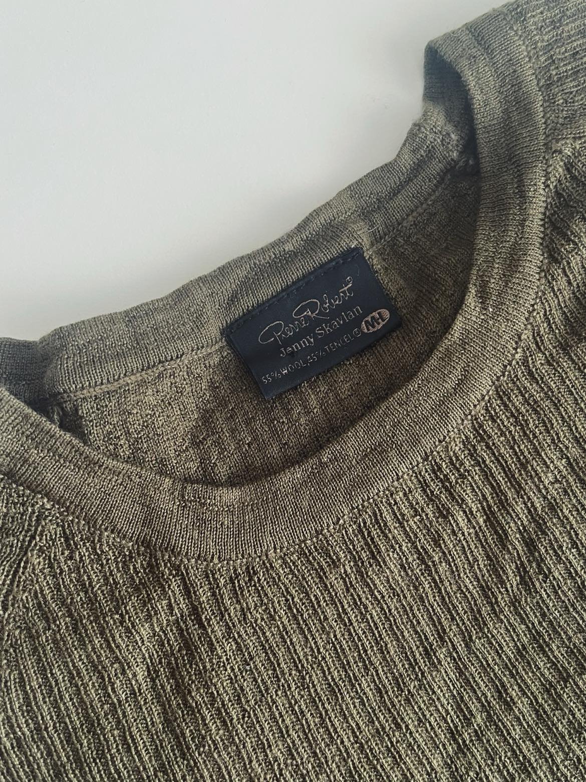 Asi dvakrát oblečené tričko značky Pierre Robert. Moc moc pekný a príjemný materiál - zmes vlny (55%) a tencelu (45%). Veľkosť písaná M/L, podľa mňa odpovedá na M, alebo aj S/M :)