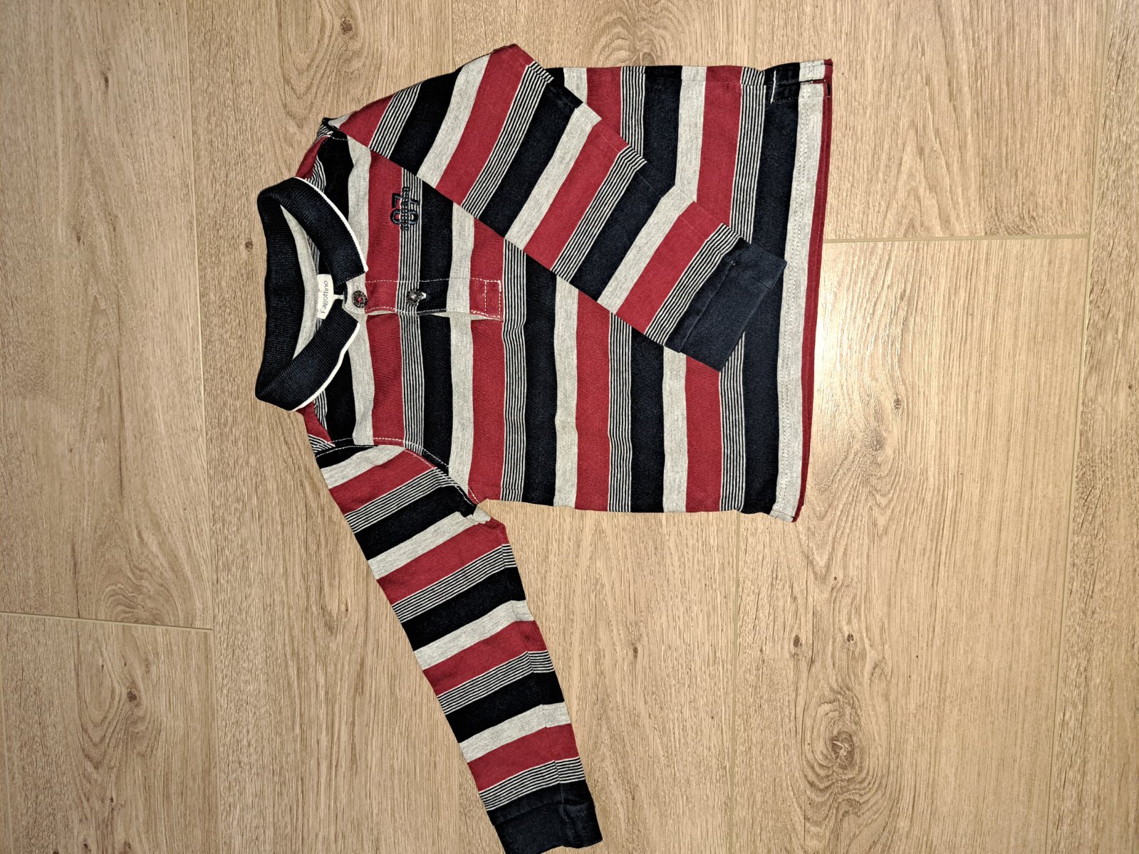 Chlapčenské tričko s golierom a potlačou, značky Fagottino, dlhý rukáv, zapínanie na gombíky, elastické. Farba: biela/čierna/červená/tmavomodrá. Materiál 100%bavlna. Nový tovar s visačkou. ROZMER...