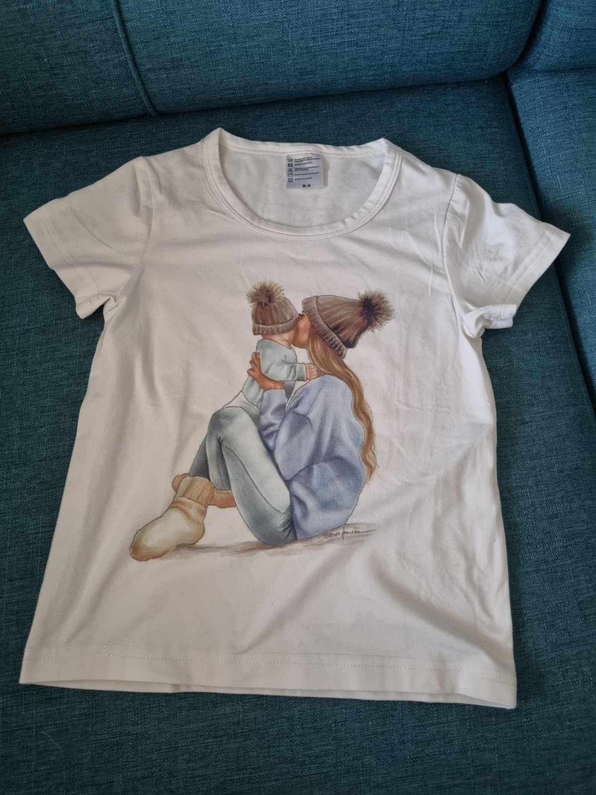 Predam iba oprate tricko mama a syn. Je uplne nove, nebolo nosene. Miery su na fotkach. Velkost sedi cca na velkost 104/110.