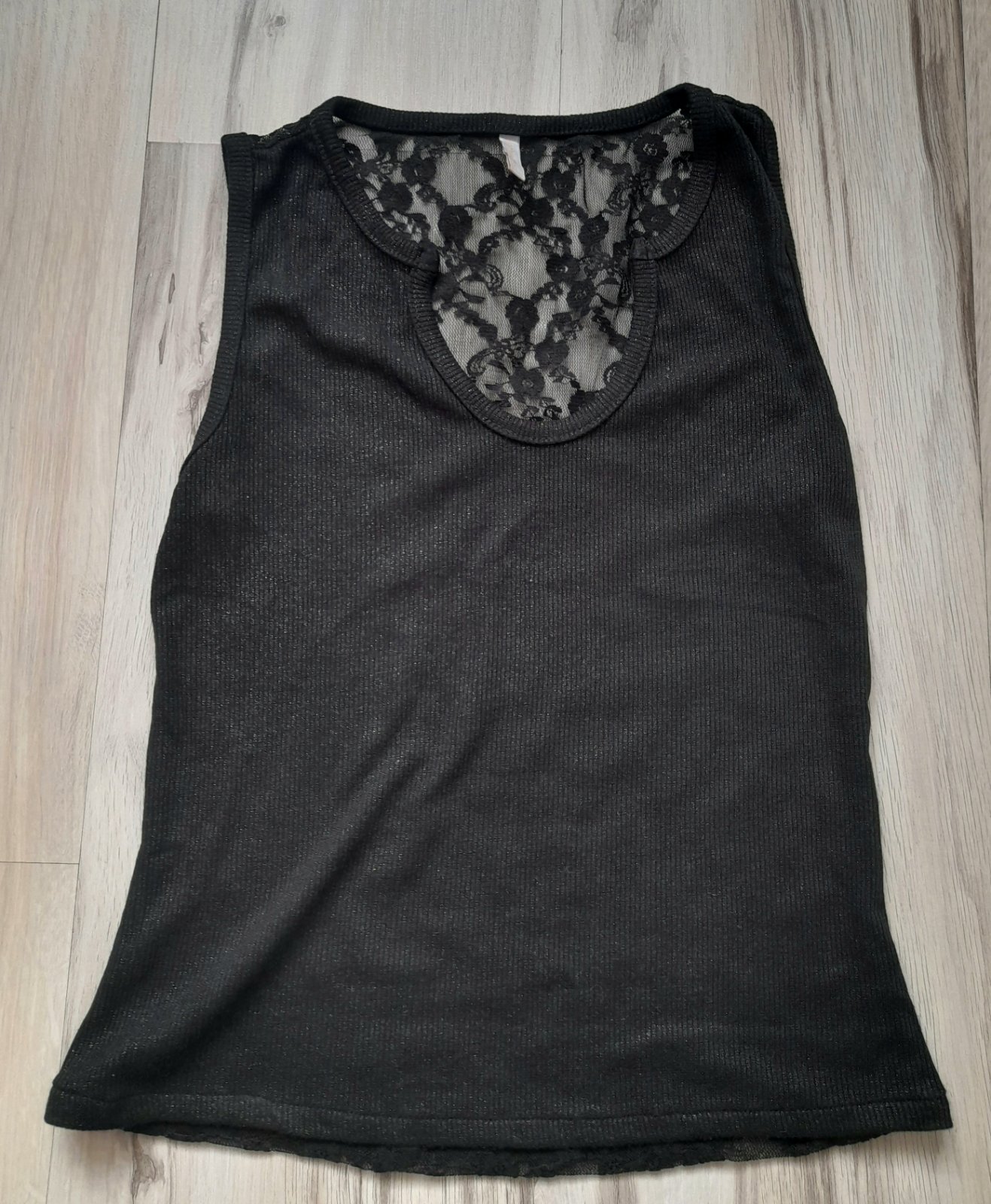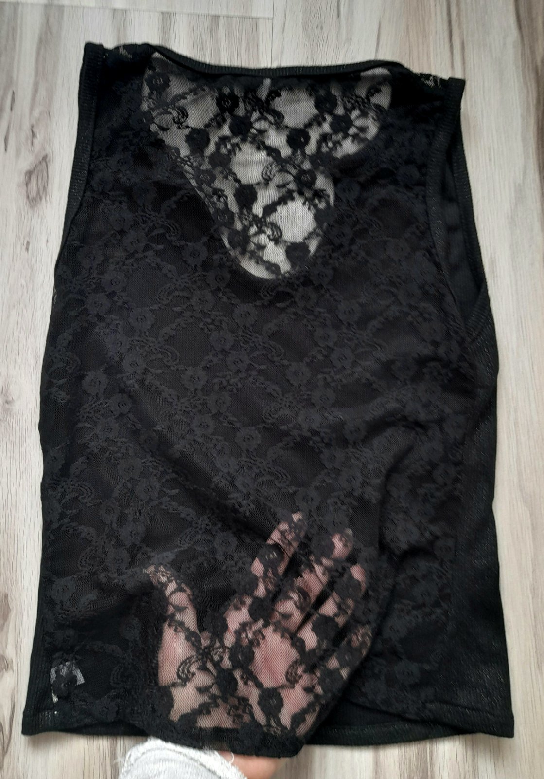 Čipkovaný tenký čierny top, bezchybný. Dlžka 60 cm, šírka 42 cm.