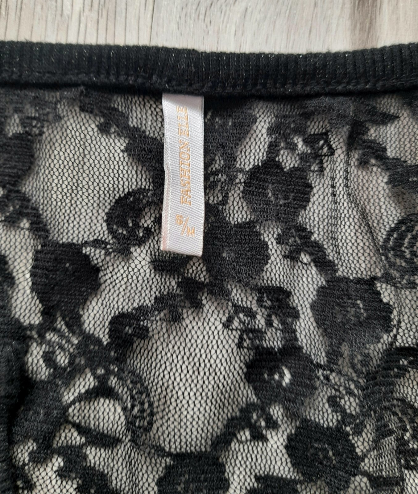 Čierny krajkový top, spodná časť s flitrami, zaväzovanie okolo krku. Sedí na XS-S. Flitre na niektorých miestach opadané. Zdarma k nákupu.