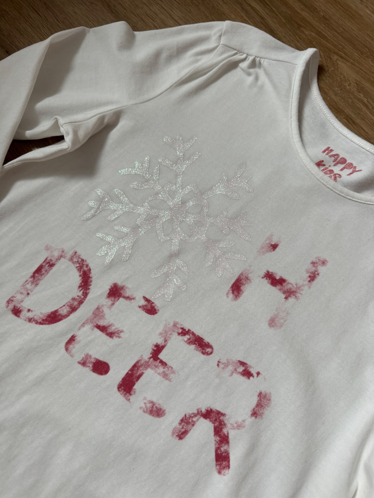 146/152 vianocne, bez fliackov zmolkov, vpredu pod krkom mala dcerka pripnutu nejaku ozdobku, vid detailne foto