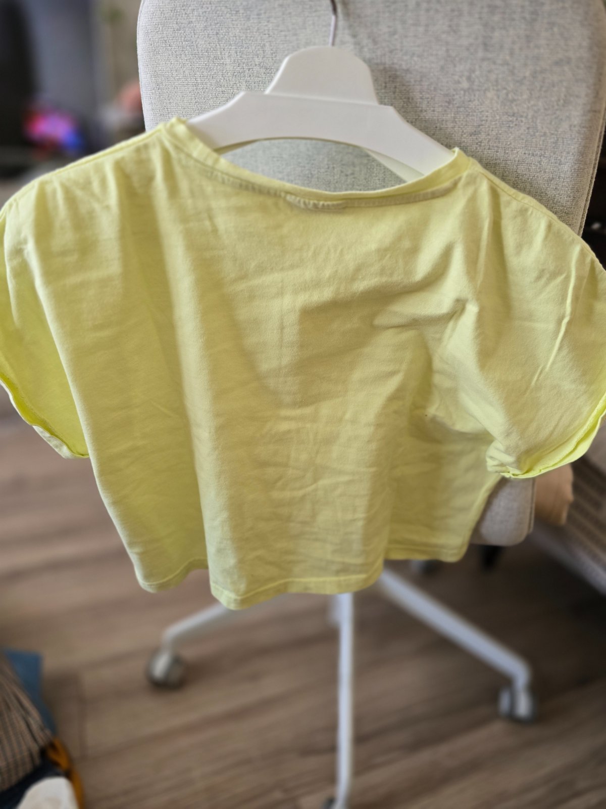 Tričko je takmer nenosené,v dolnej časti sa dá uviazať a tým pádom stiahnuť. Dĺžka 56cm, šírka 45cm.