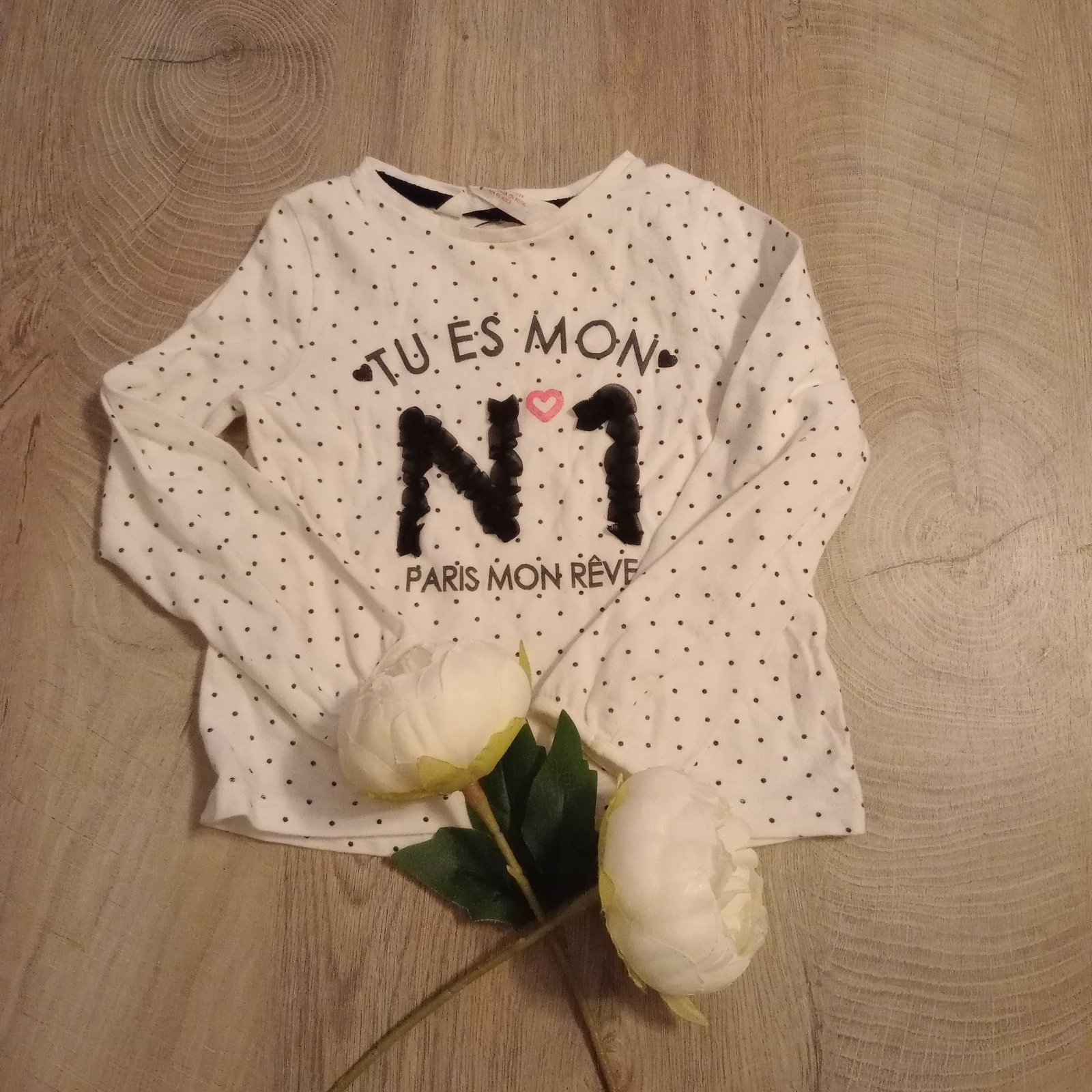 Dievcenske tricko H&M s potlacou. Pri foteni som si vsimla maly fliacik. Cena + posta