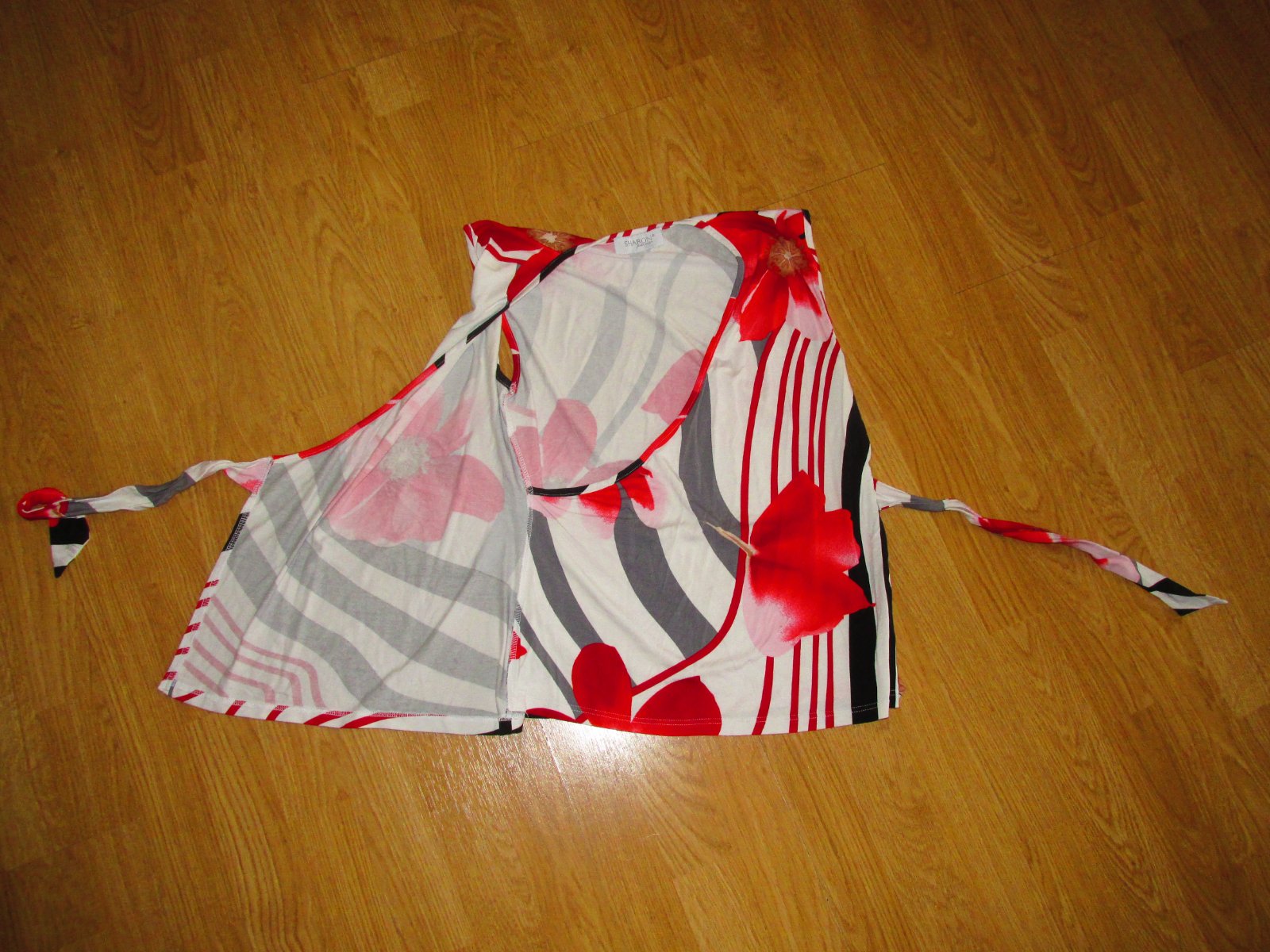 Elegantné tričko zn. Sharon - sk. výroba, bolo dosť drahé, 1 x oblečené, má efekt zaväzovania, ale vo vnútri je spojené, je to len efekt. Materiál je 95 % viskóza, 5 % elastan.