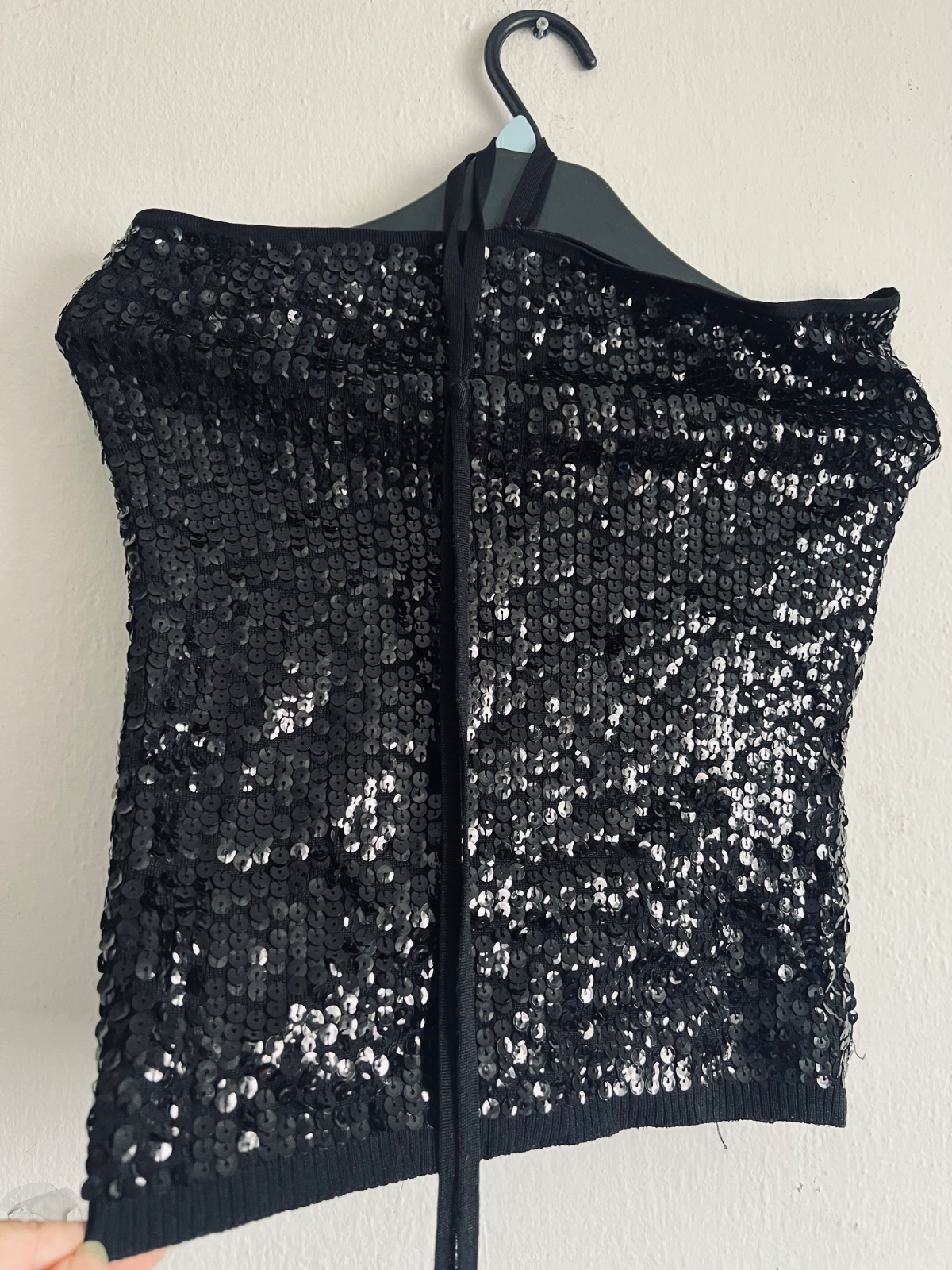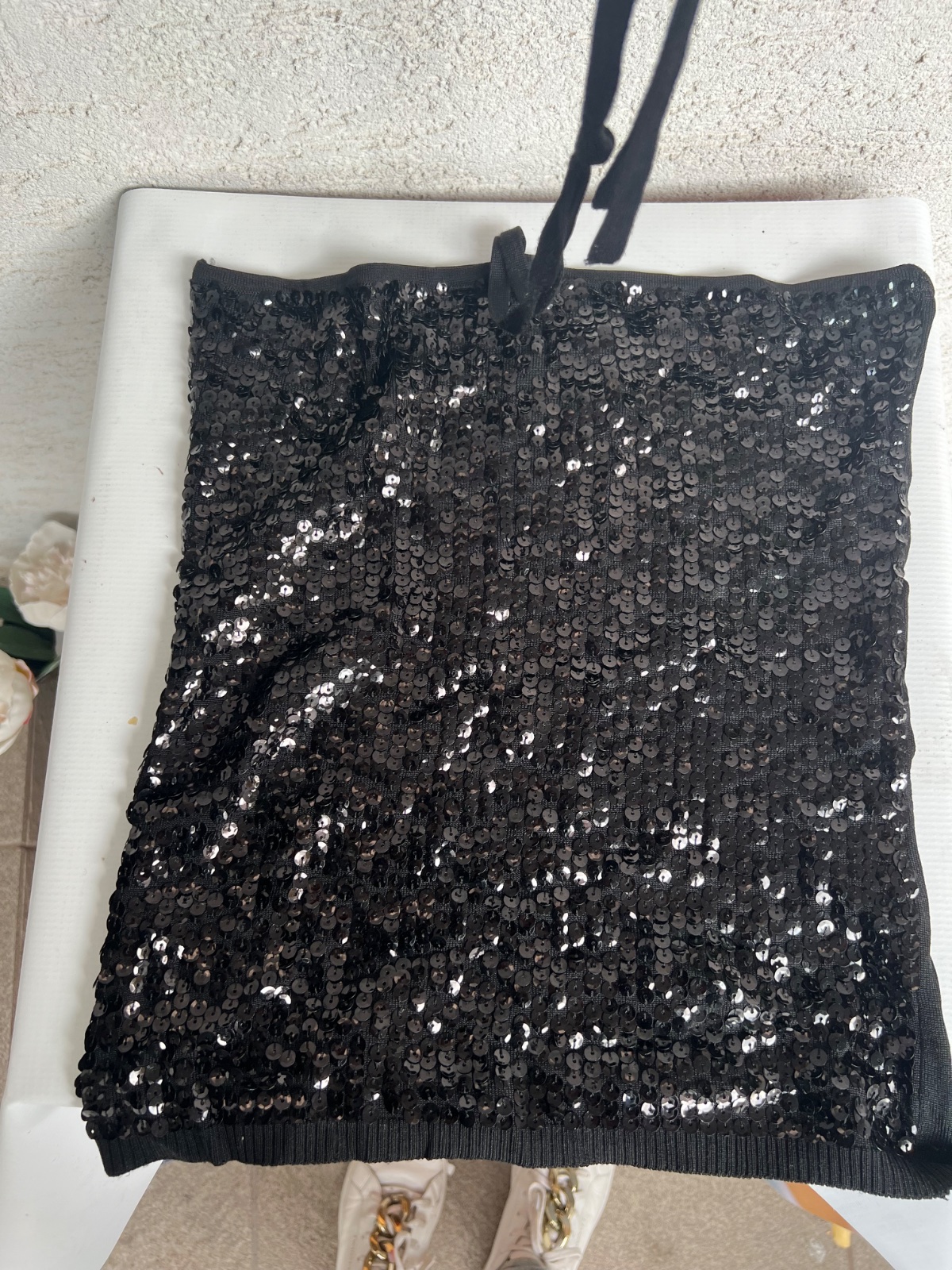 Mango flitrovane flitre slavnostny silvester vianoce tielko top tunika s uvazovanim okolo krku vzate max 2x Sedi s/ m