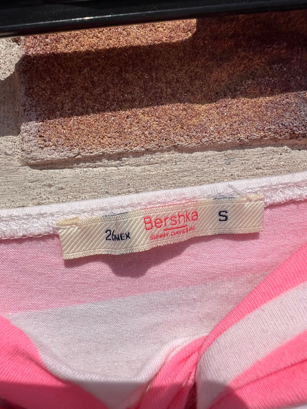 Ruzovy top Bershka pekne kopiruje postavu. Velkost S. Max sirka pod pazami je 52 cm, cena 3€