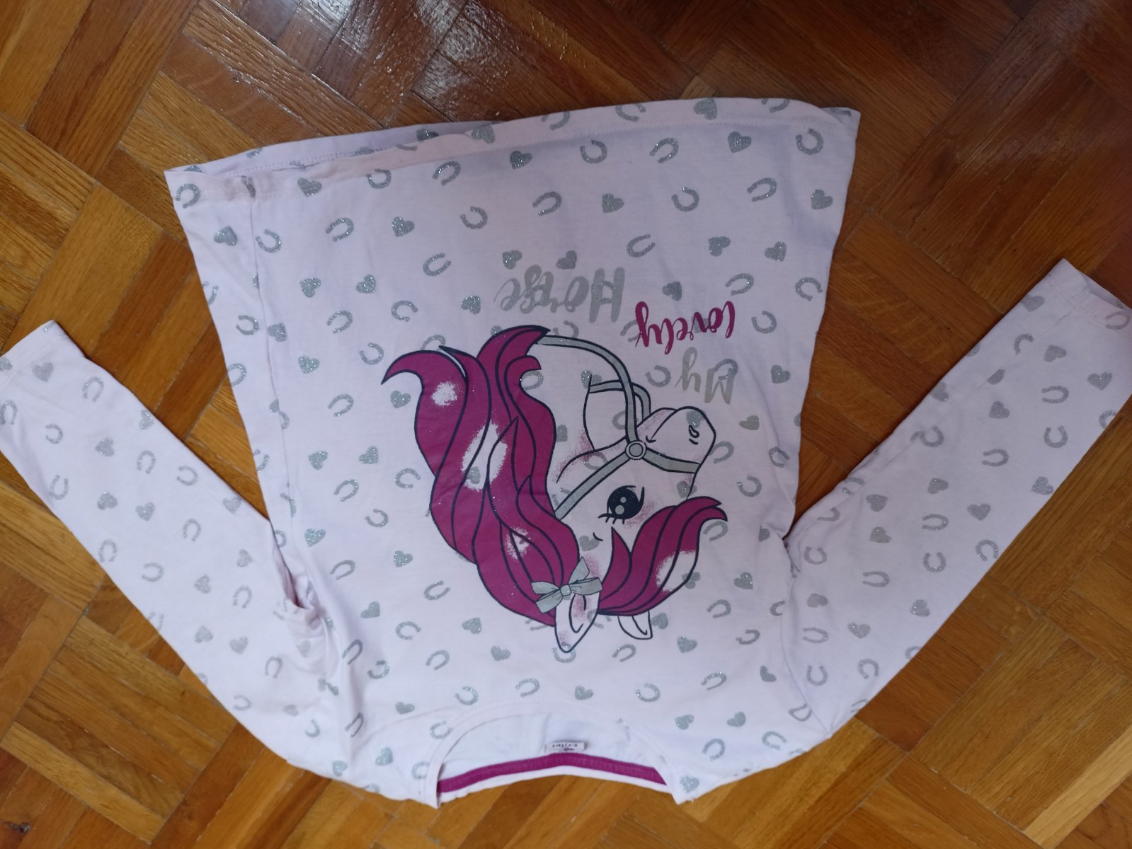 Bledoruzove tričko (farba ako na 2.foto) s koníkom a s čipkou, oblečené 1x, bol nám krátky rukáv, TOP stav.