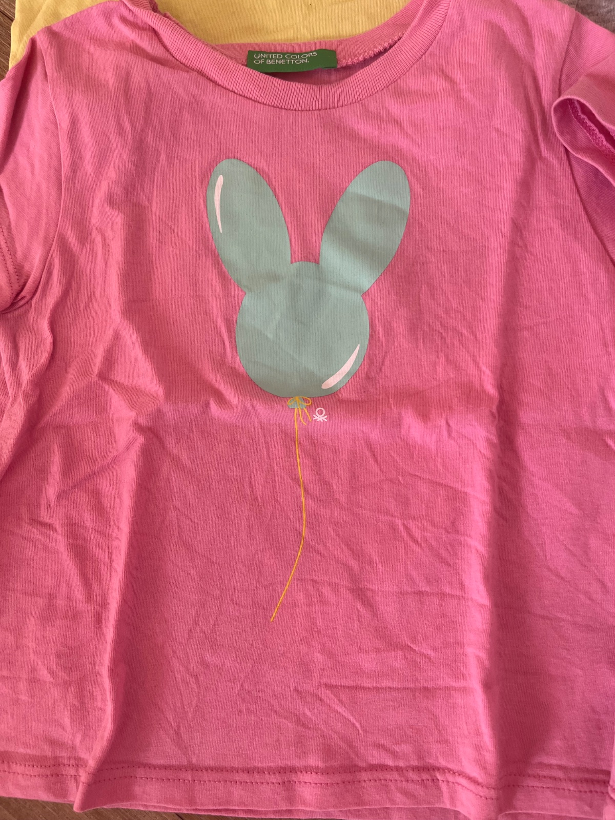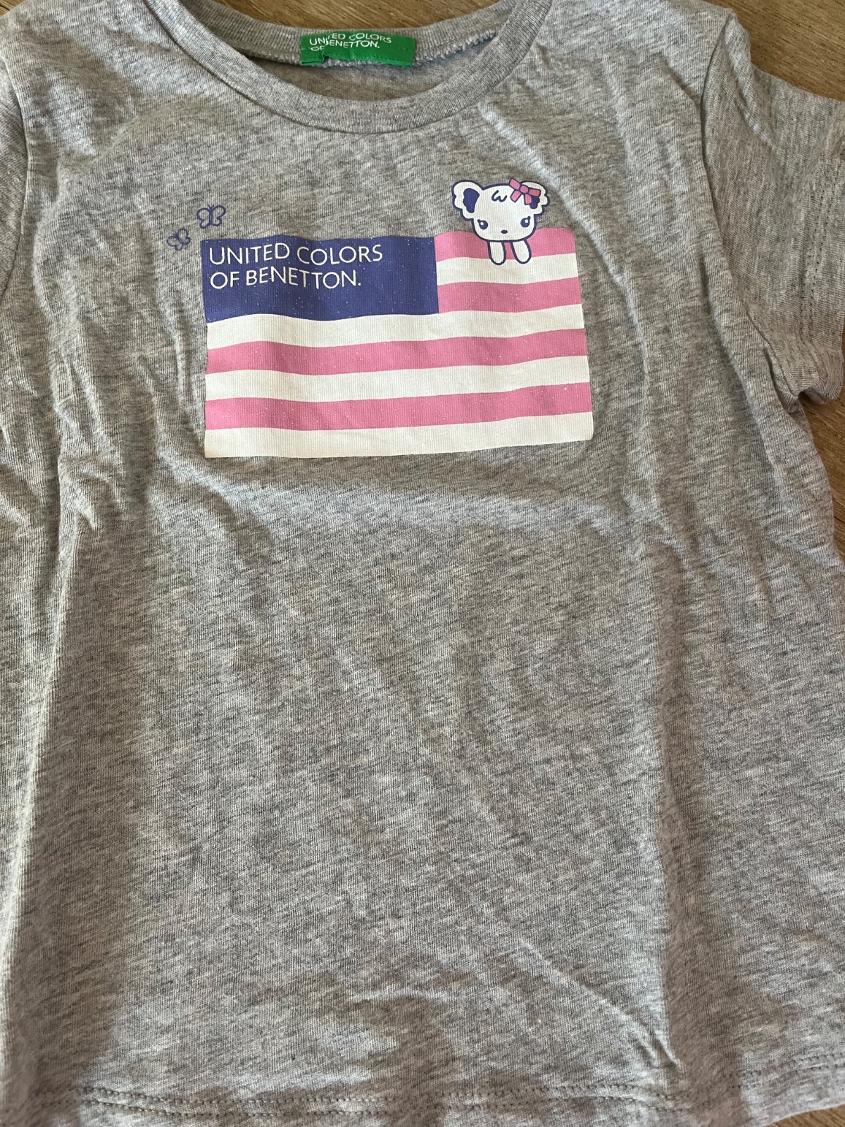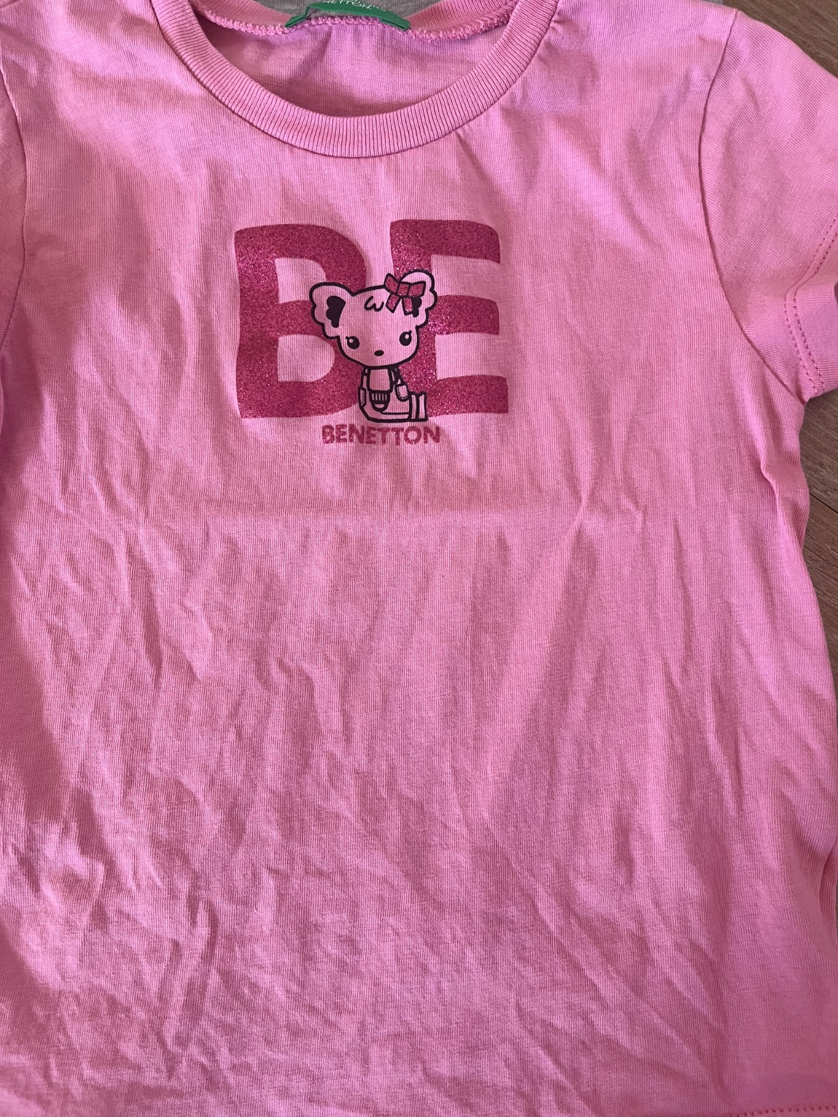 tricko benetton, dlzka 38 cm, krasna aplikacia v predu vysivana aj flitre a druhe tricko Disney George velkost na 2-3 roky dlzka 38 cm, v predu je od pera vid na foto tricka su nosene ale aj naprie...