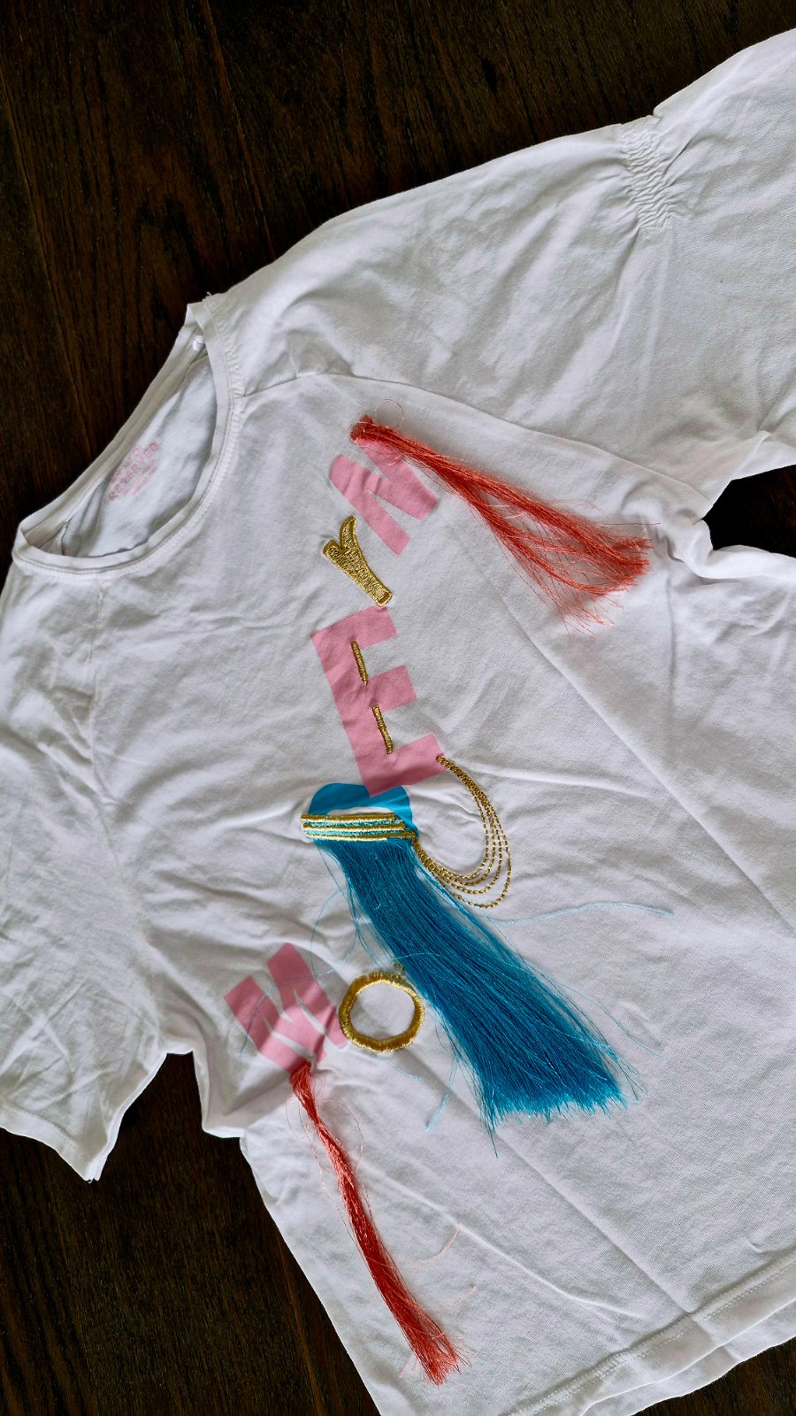 Perfektne oversized tricko zn.Reserved s 3D aplikaciami strapcov Momey v super stave. Cena LEN 5eur je fixna
