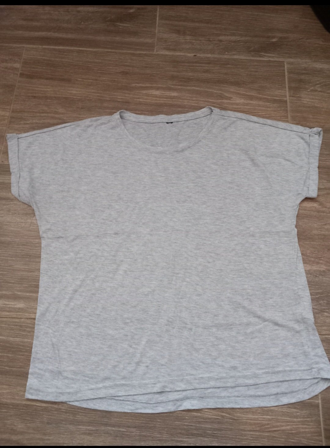 svetlo sede tricko par krat oblecene- ako nove, zial po porode male.. pekny jednoduchy strih material 100% bavlna dlzka 55cm sirka pod pazuchami 44cm x 2, ale je poddajne spodna sirka je 46cm x 2