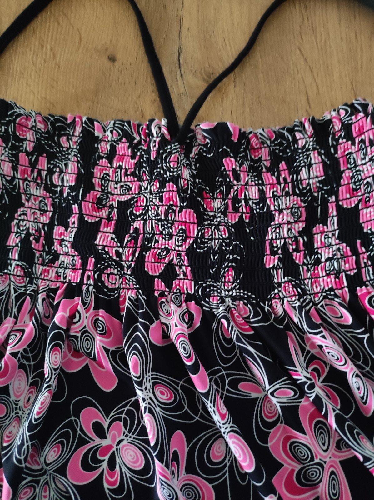 Nekrčivý padavý materiál, príjemný na dotyk, hrudník je gumičkový, povolí až do L, dá sa uviazať okolo krku, kupovaný v Anglicku, bez poškodenia.