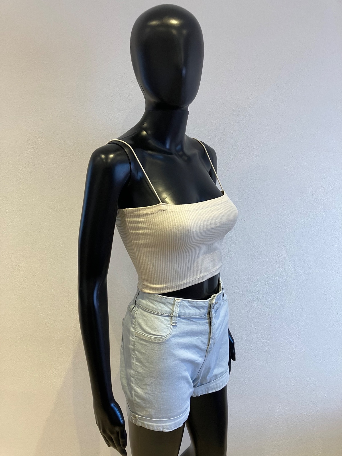 Dámske tričko na tenké ramienka, krátke, elastické, tenké, materiál 96%polyester 4%elastan.