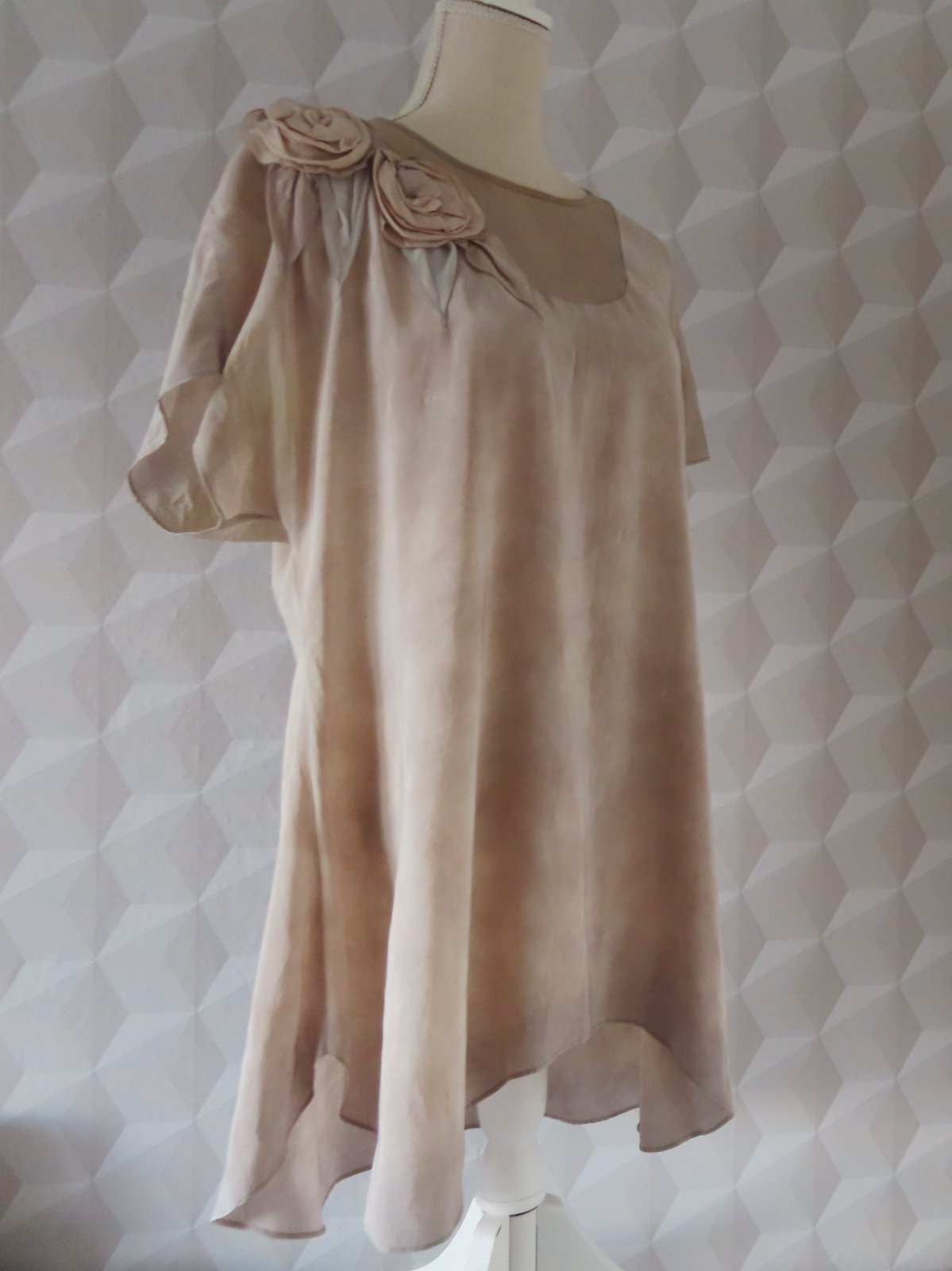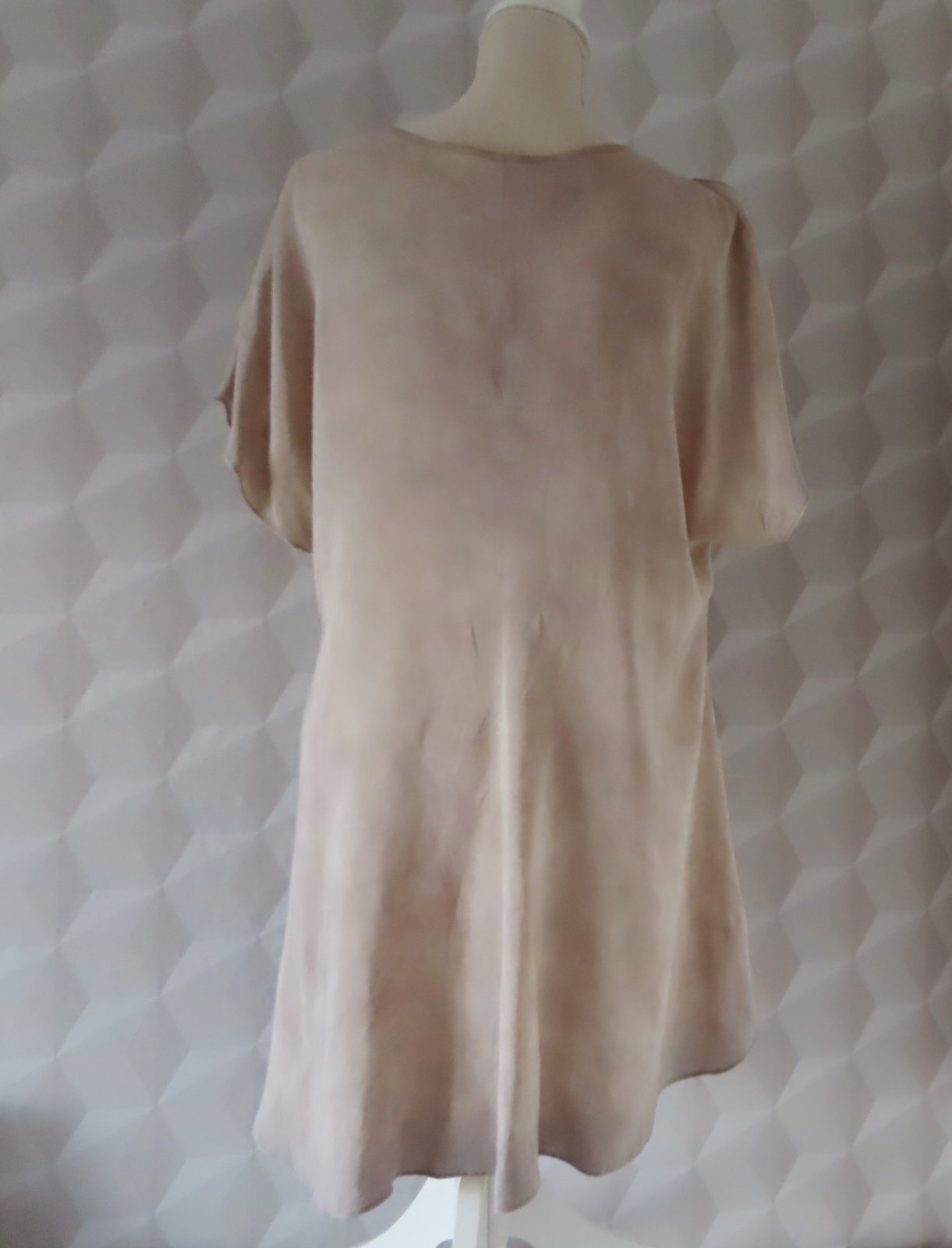 Hodvábna tunika vo veľ. XL, rozmery: dlžka 85cm, pod pazuchami 2x54cm.
