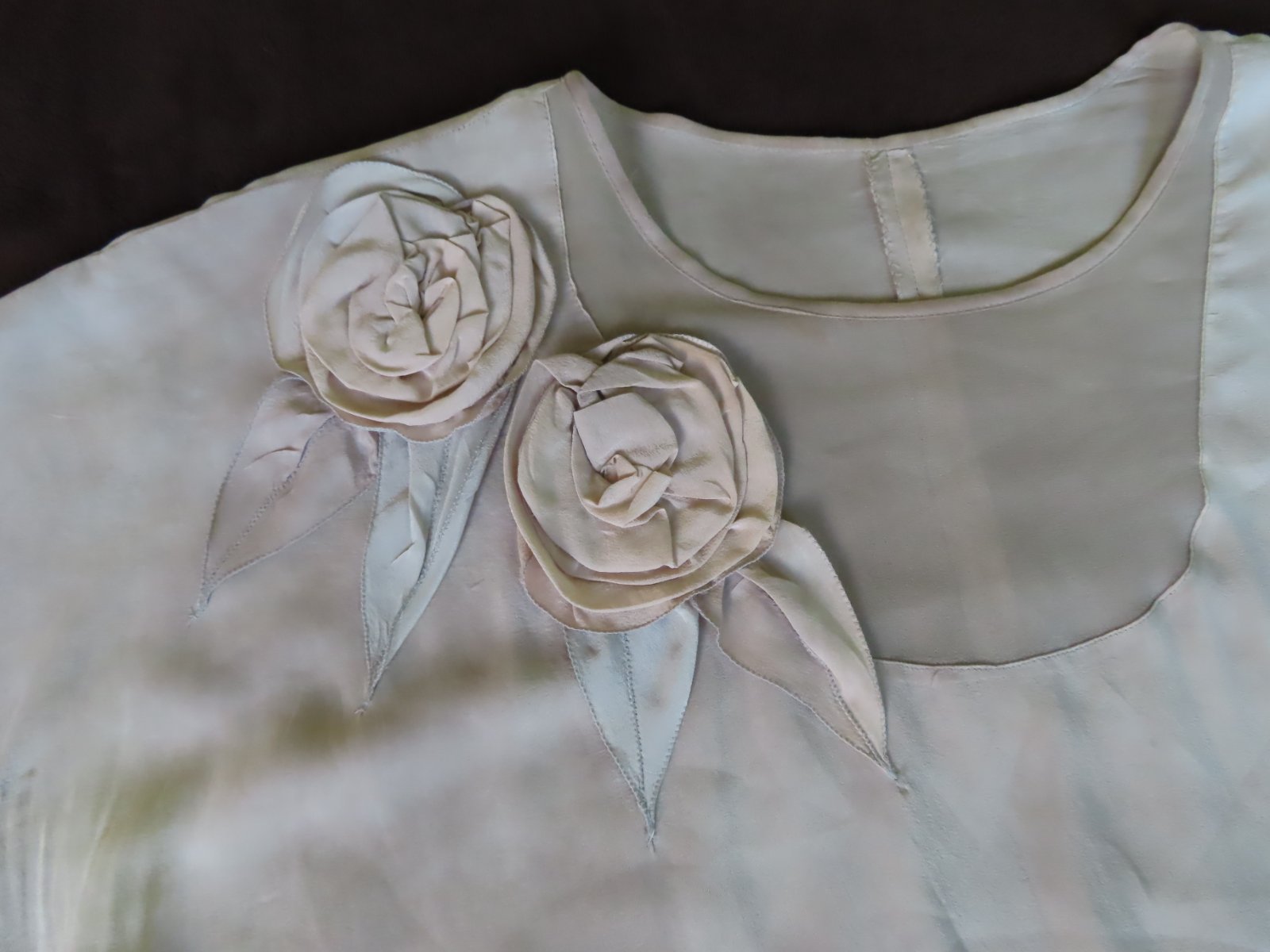 Tuniku zdobí aplikácia kvetov, je ľahučká, padavý hodváb.