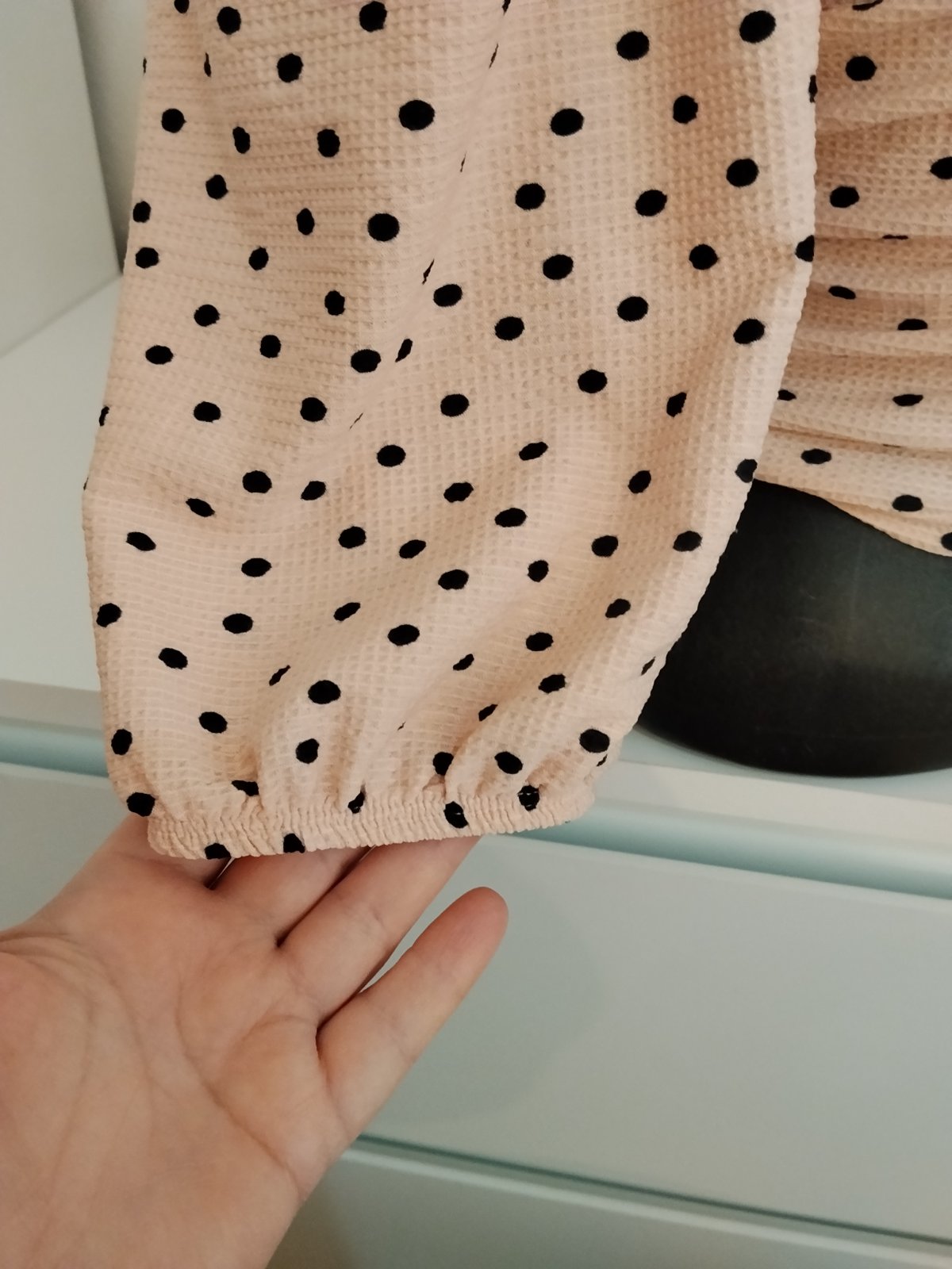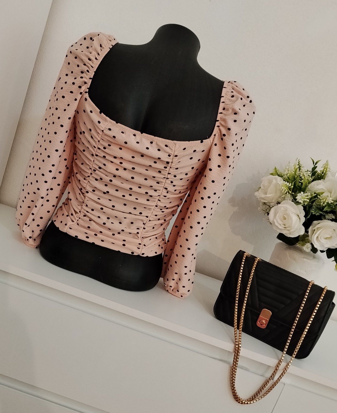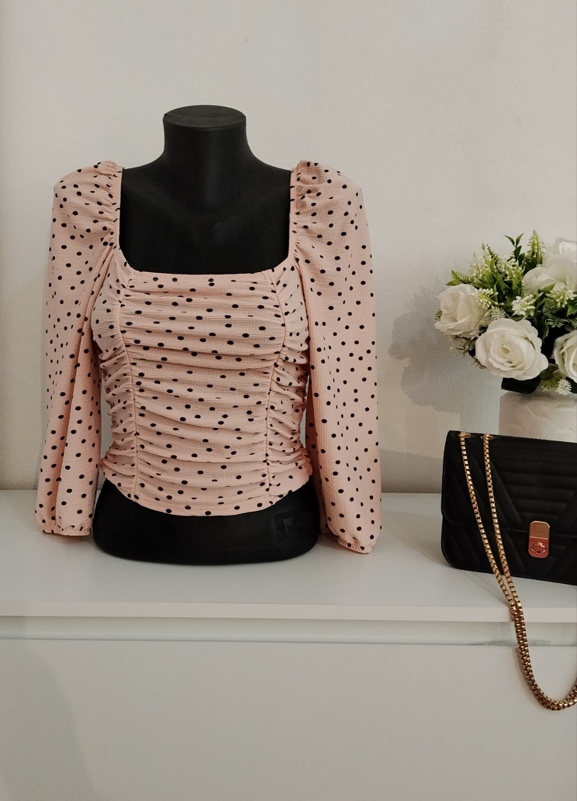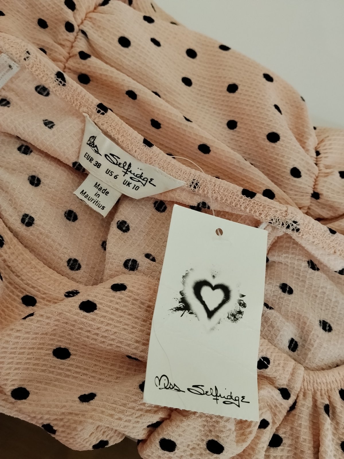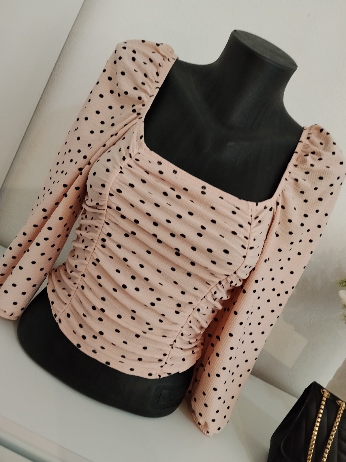 Nádherný romantický top značky Miss Selfridge v jemnej púdrovo-ružovej farbe s elegantnými čiernymi bodkami ✨