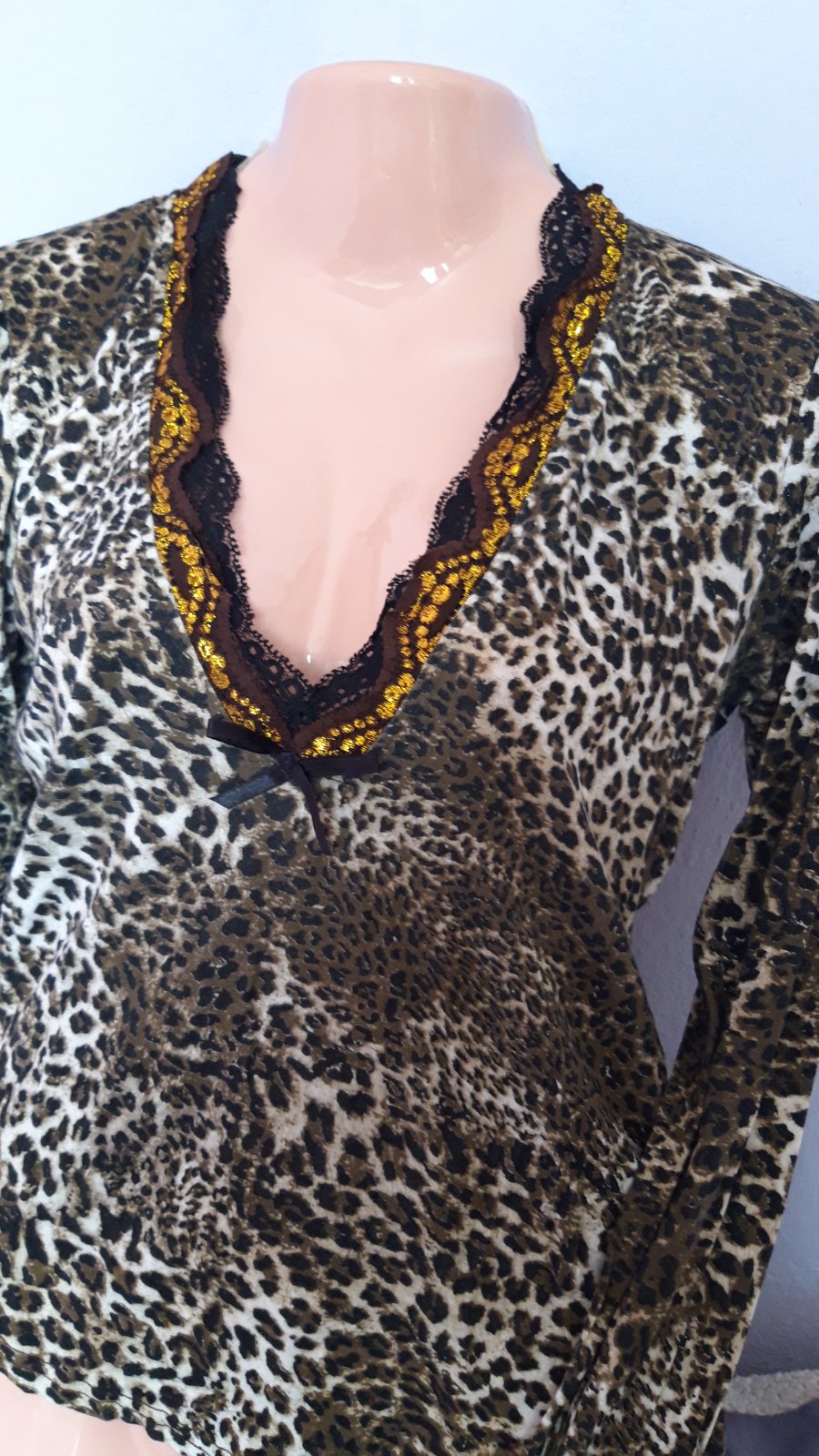 Tričko tigrie s výstrihom a so samet.stužkou,vzadu hnedé Velk.XL/ XXL Zn.You Joy Bavlna,elastan
