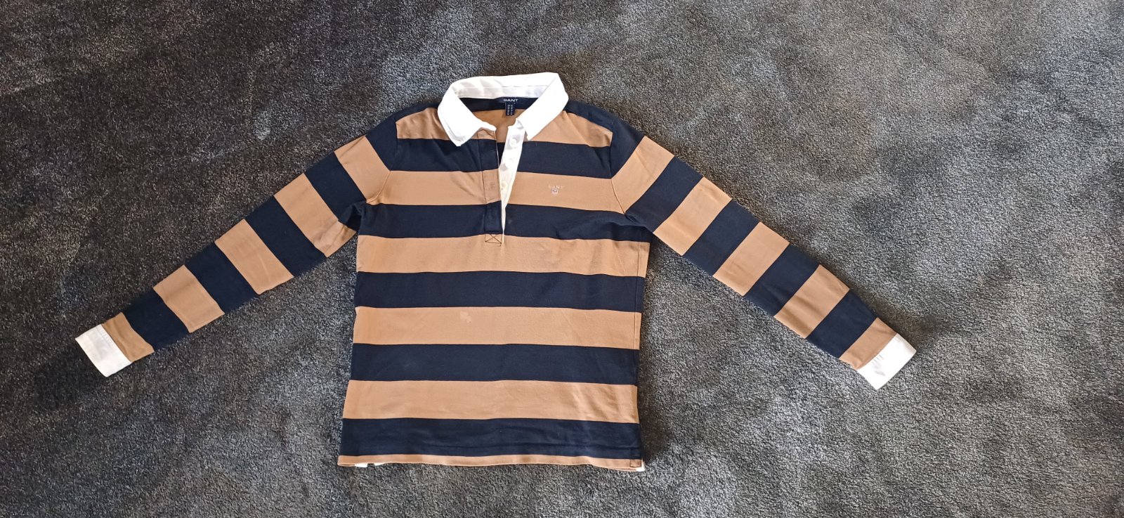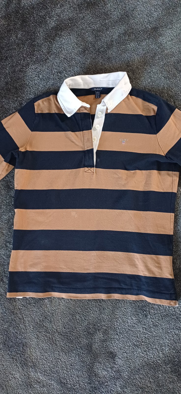 Nosené v dobrom stave, farba svetlejšia. Veľkosť udaná M, vpredu logo Gant. SPP 44cmx2 a dĺžka 59cm