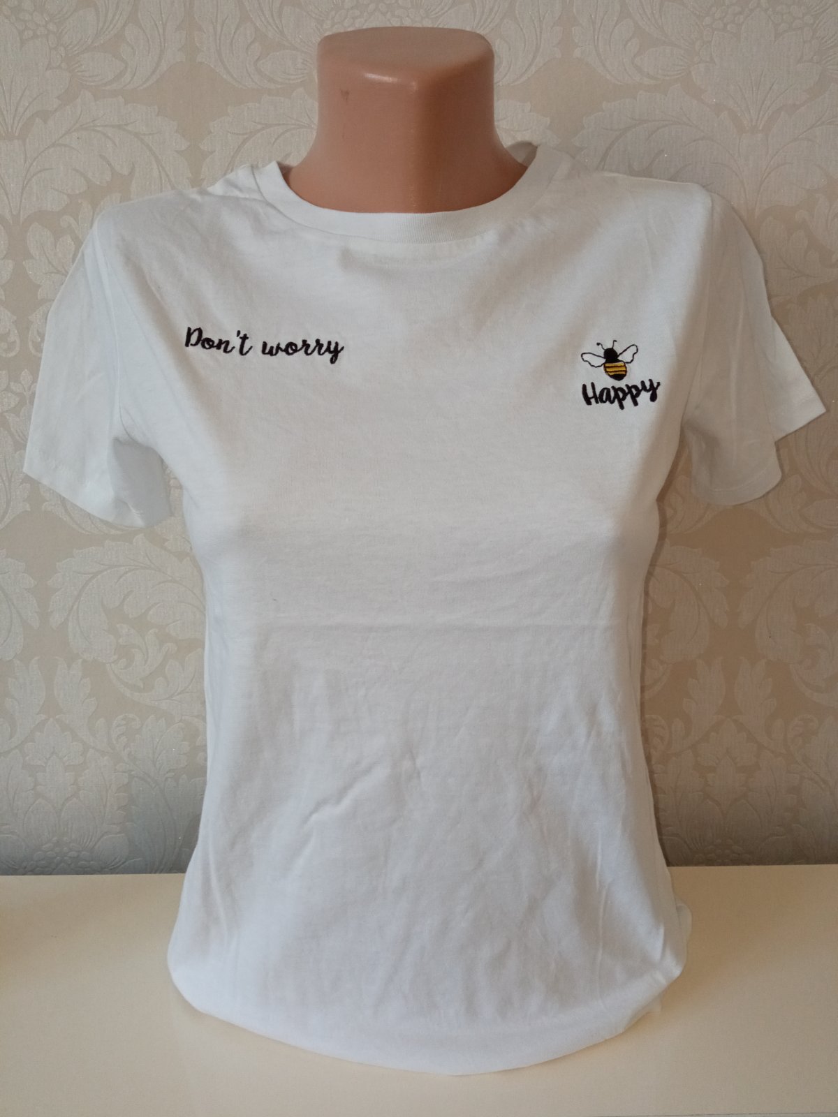Dievčenské tričko s krátkym rukávom a vyšívaným vzorom a nápisom, okrúhly výstrih, elastické, dvojité číslovanie, materiál 100%bavlna.