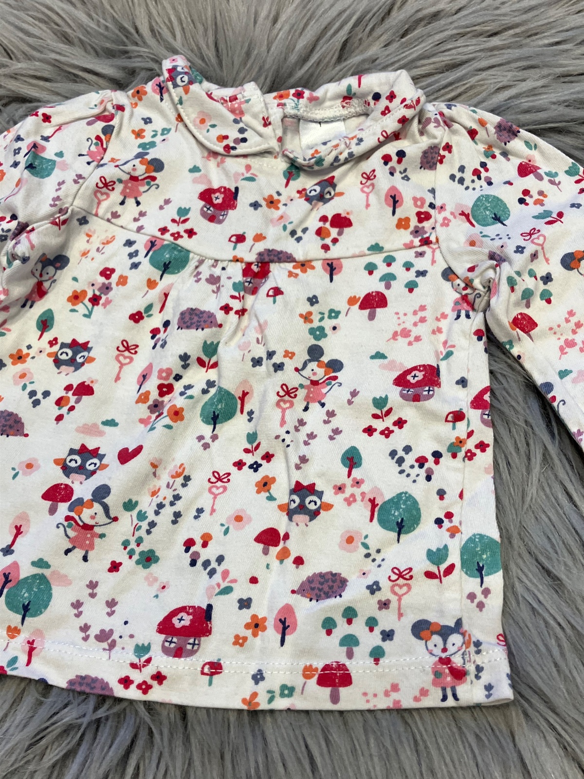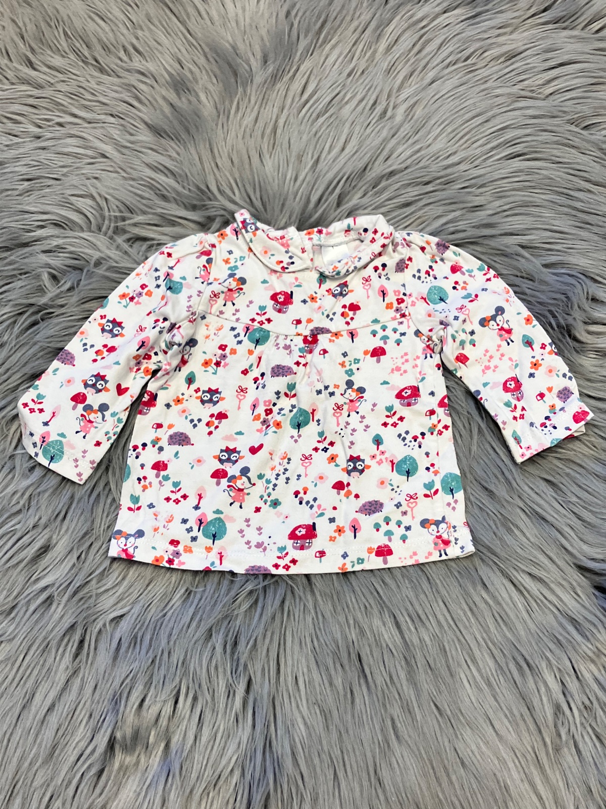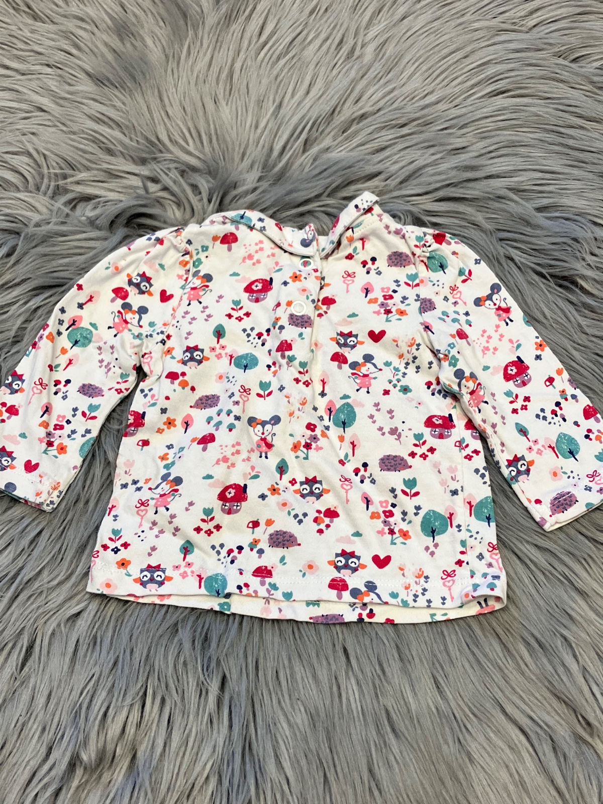 Dievčenské tričko s dlhým rukávom, vzorované, elastické, s golierom, zapínanie vzadu na cvoky, materiál 100%bavlna.