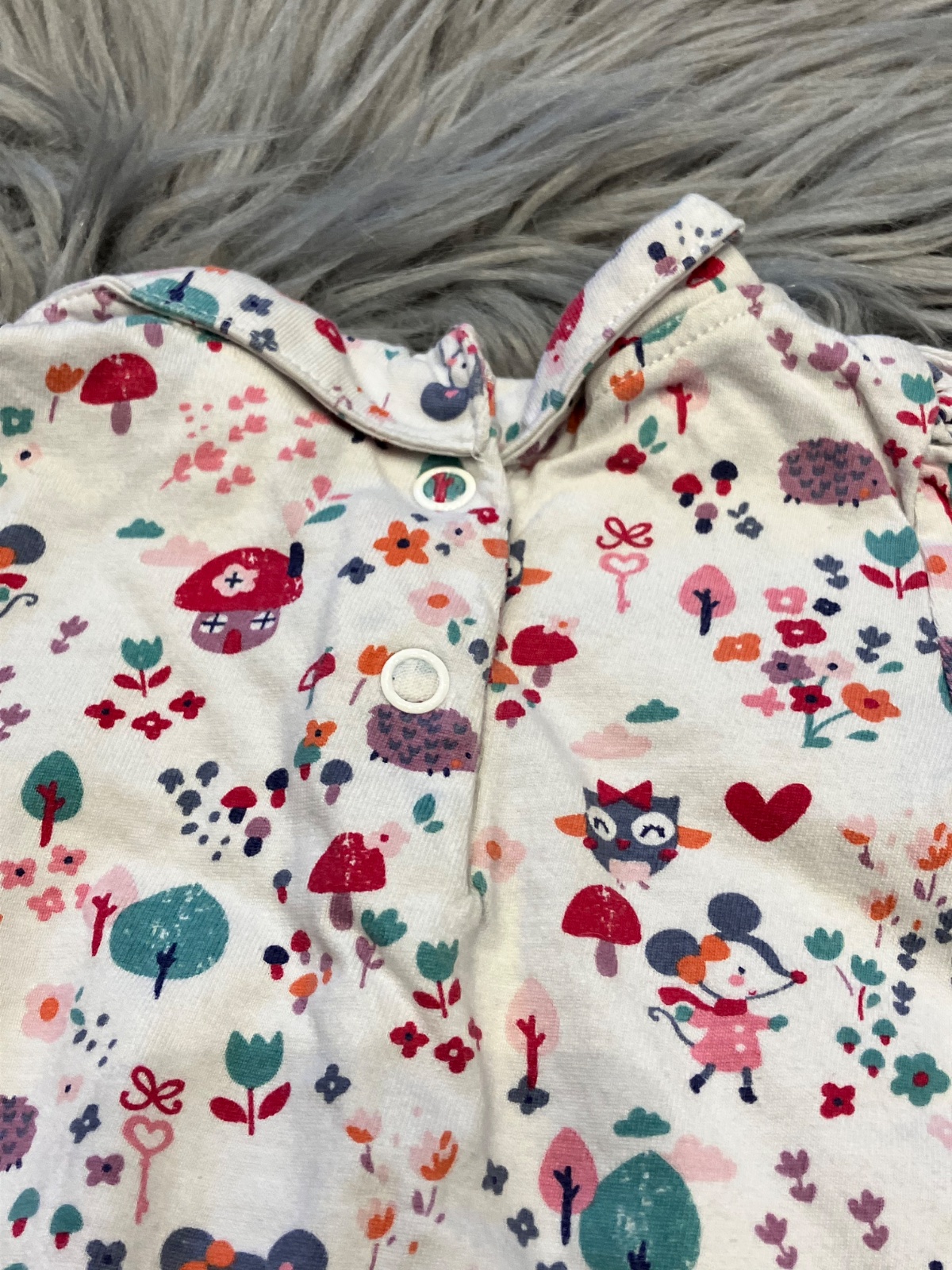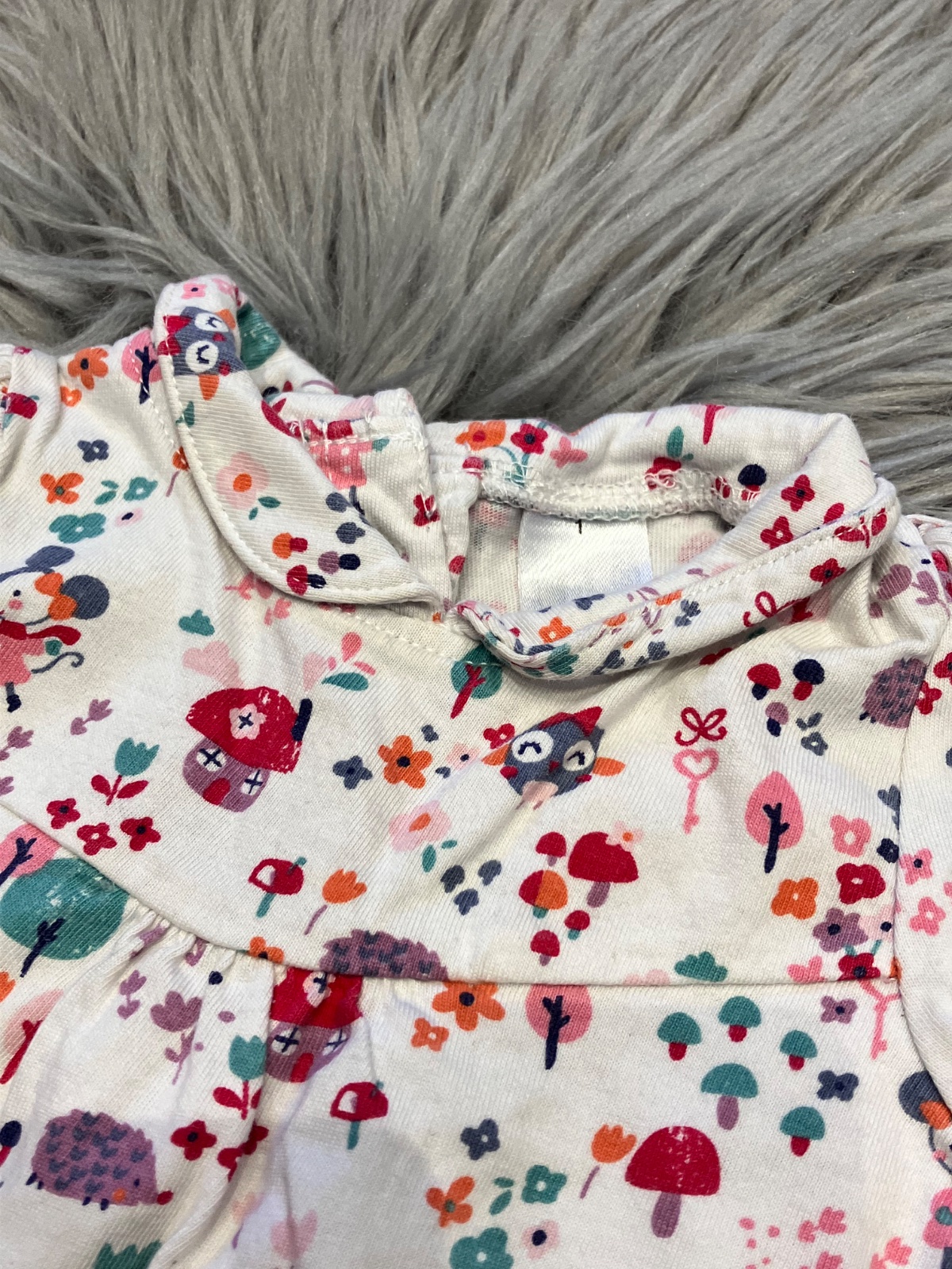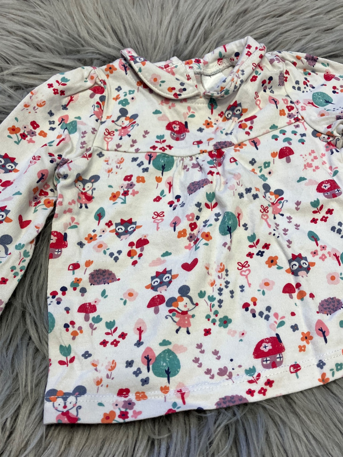 Dievčenské tričko s dlhým rukávom, vzorované, elastické, s golierom, zapínanie vzadu na cvoky, materiál 100%bavlna.