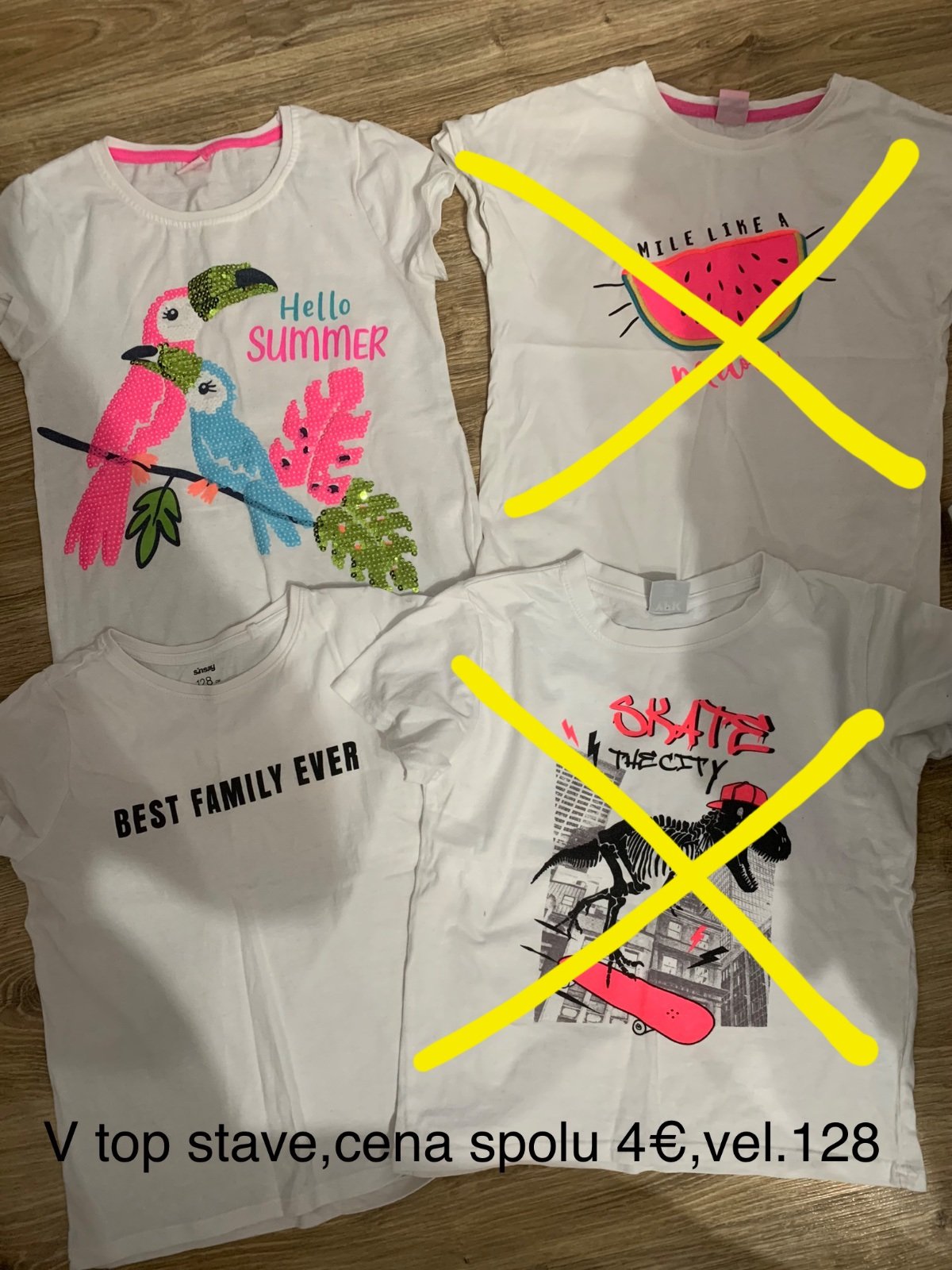Ďakujem, že ste nahliadli do môjho bazárika. Pri kúpe viac vecičiek dohoda možná:). Vecičky späť neberiem, takže sa radšej veľa pýtajte, prípadne urobím viac fotiek ak bude treba, samozrejme premeriam. Vecičky sú nosené len mojimi synovi, aj dcerke,niektoré sme nemali na sebe ani raz. Ak je na nich aj nižšia cena, neznamená to, že sú zničené, ale máme toho veľa a tak to nechcem skladovať. O výmenu záujem nemám. K cene tovaru účtujem poštovné podľa tarif slovenskej pošty.(obyčajne poštovné na vlastnú zodpovednosť). Na dobierku neposielam.IBAN:SK5409000000005032530527,Prajem Vám pekny den :) ,Eva