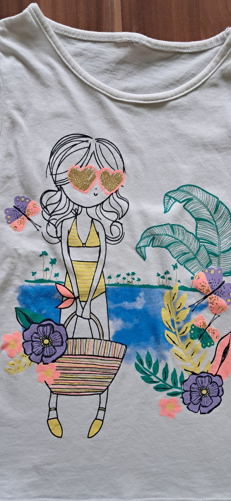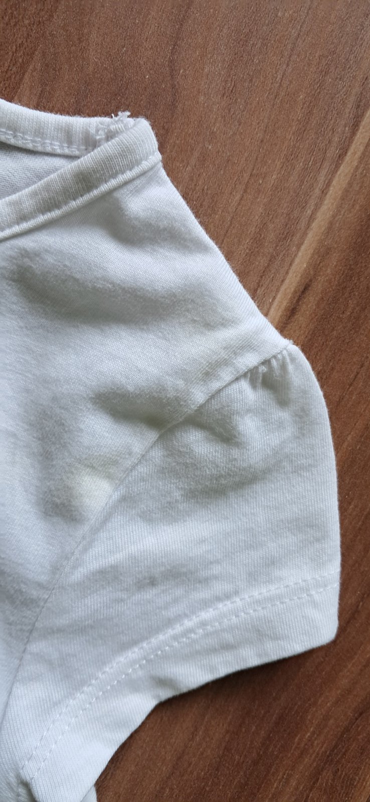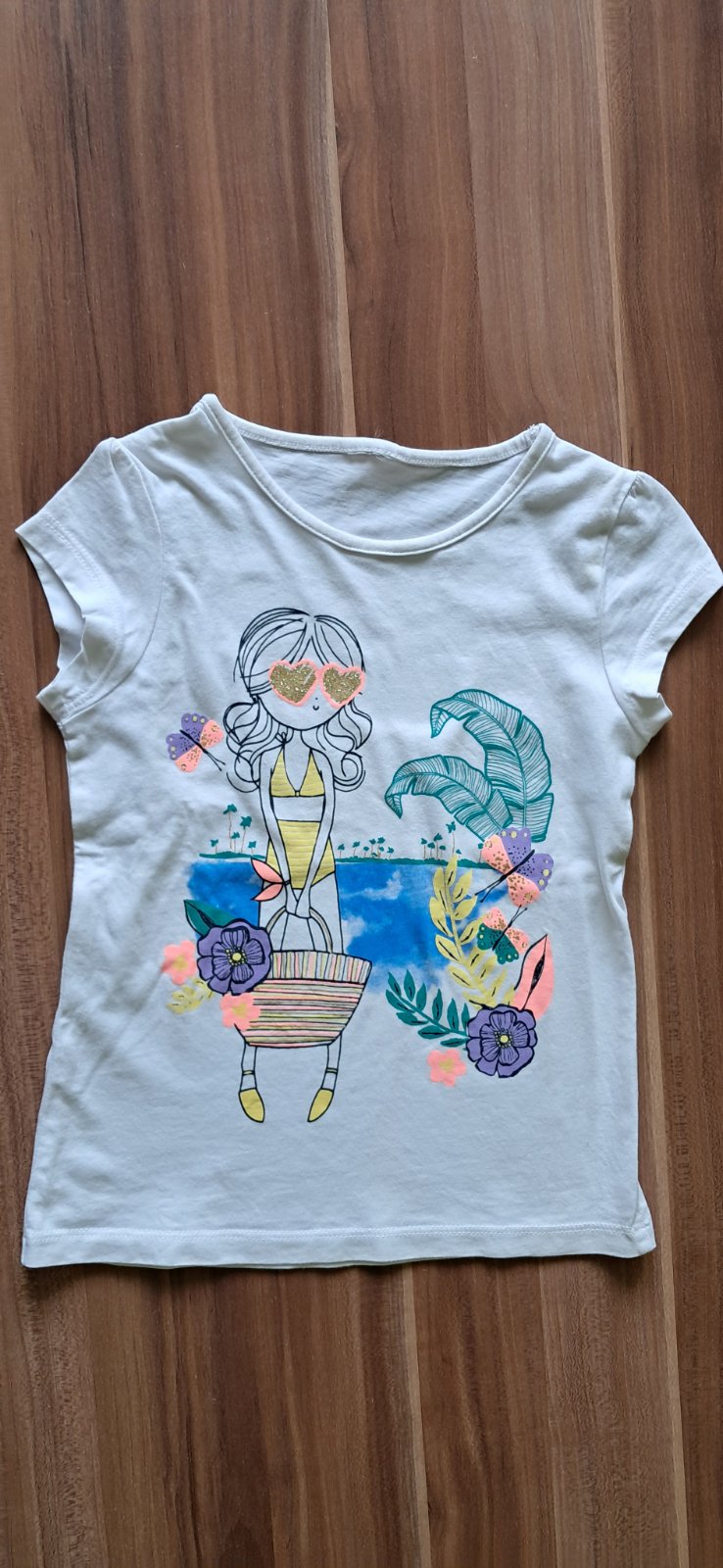 Ponúkam na predaj pekné bavlnené tričko, štítok sme odstrihli, takže veľ. odhadujem na 3-4 roky, na rukáve som si všimla fliačik.