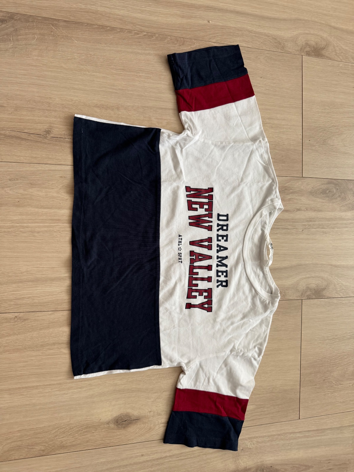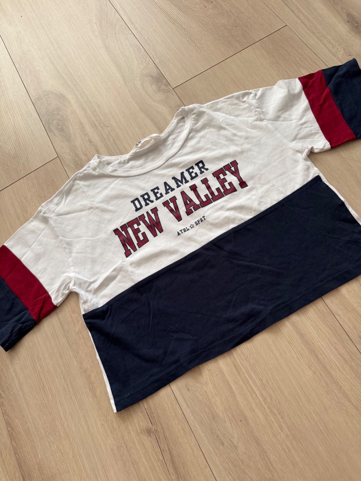 Velkost 134-140 vek 8-10rokov.Známky nosenia a menší bledší fľak vpredu na pravej strane dole. Dĺžka 49cm. Cez hrudník 35-36cm.