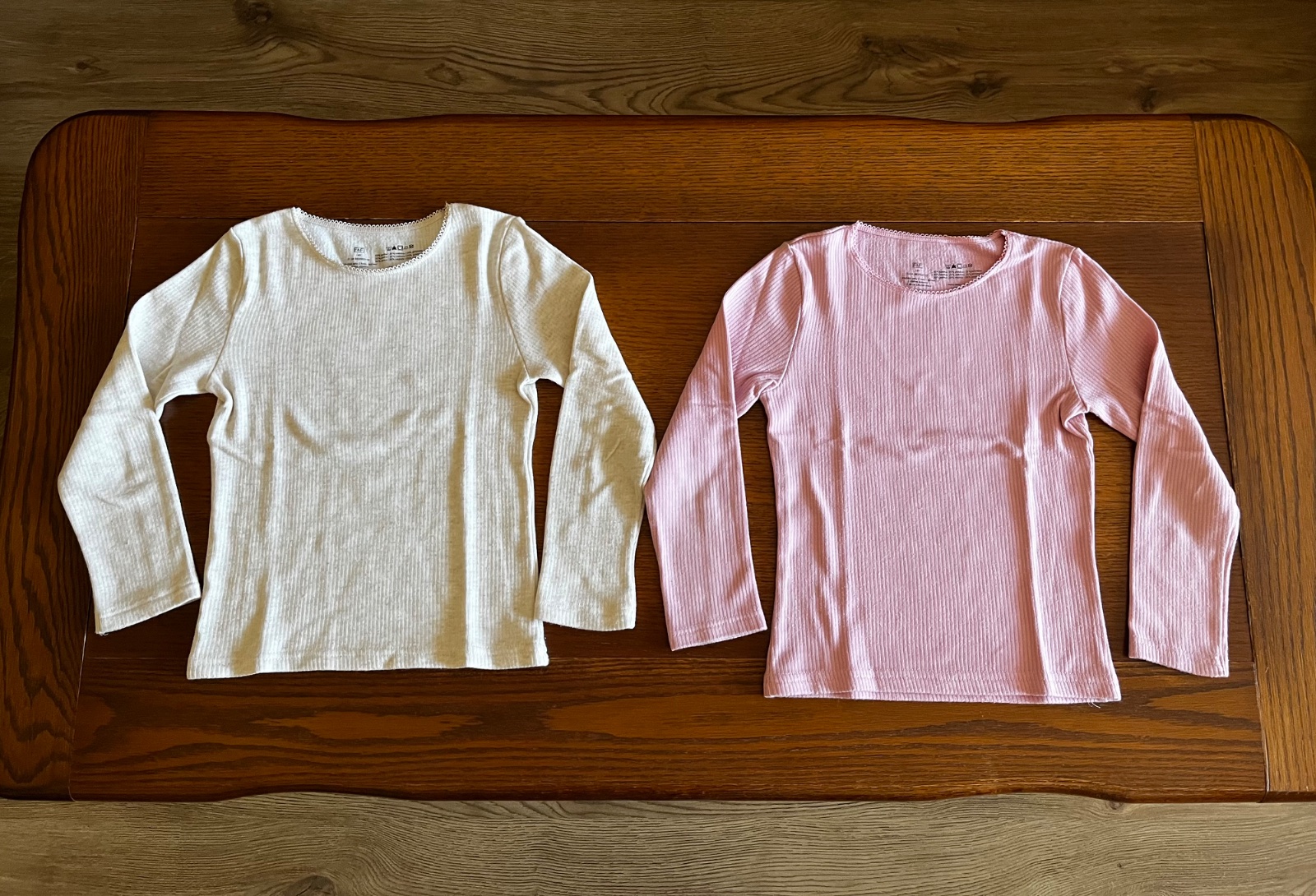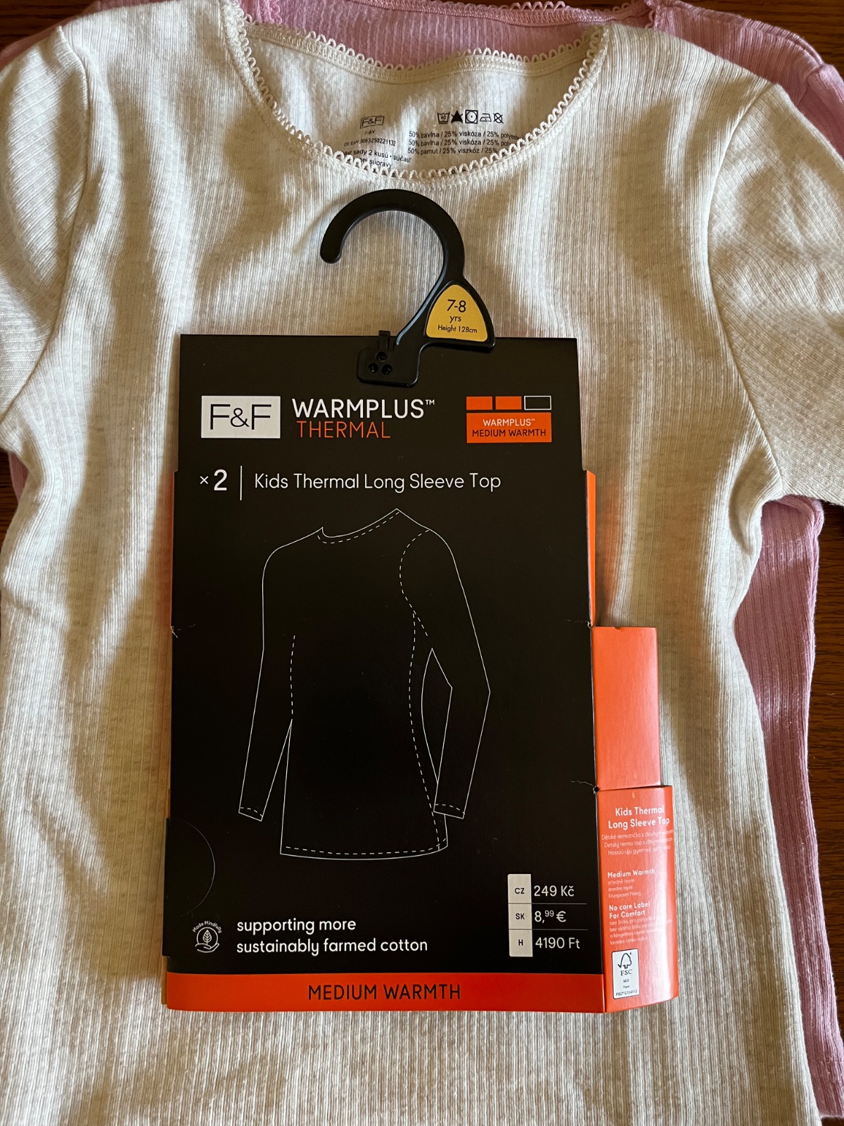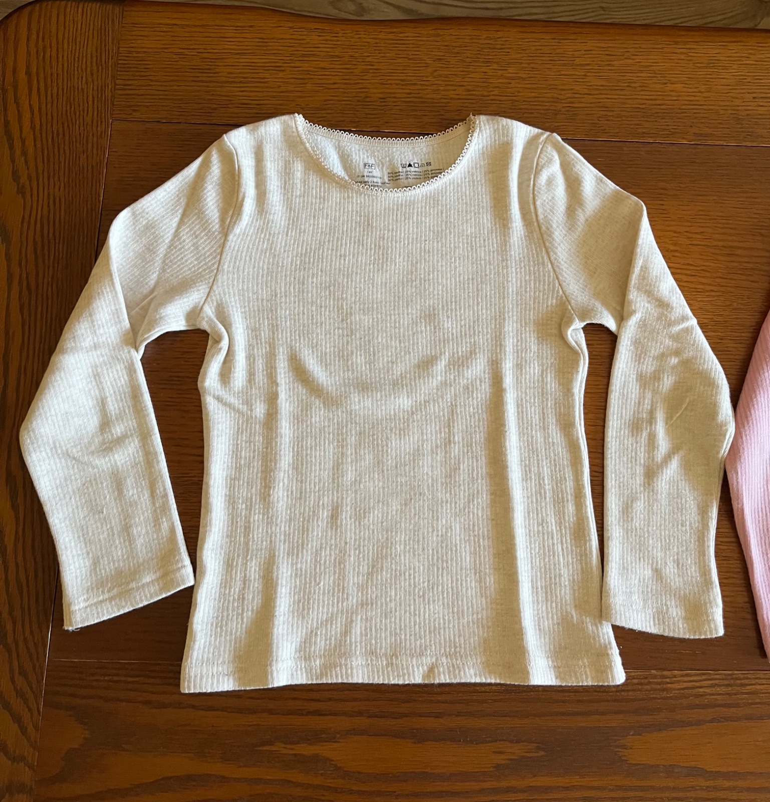 Super stav, trikrát oblečené termo trićká v bledoružovej a krémovej melanž farbe.
