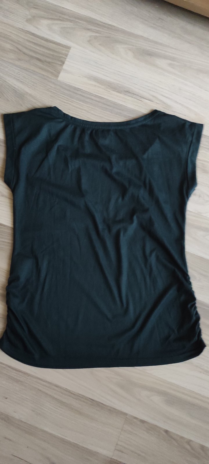 Predám pekné dámske tričko, veľkosť písaná S ale v pohode aj M, materiál polyester,farba pekná tmavá zelená.