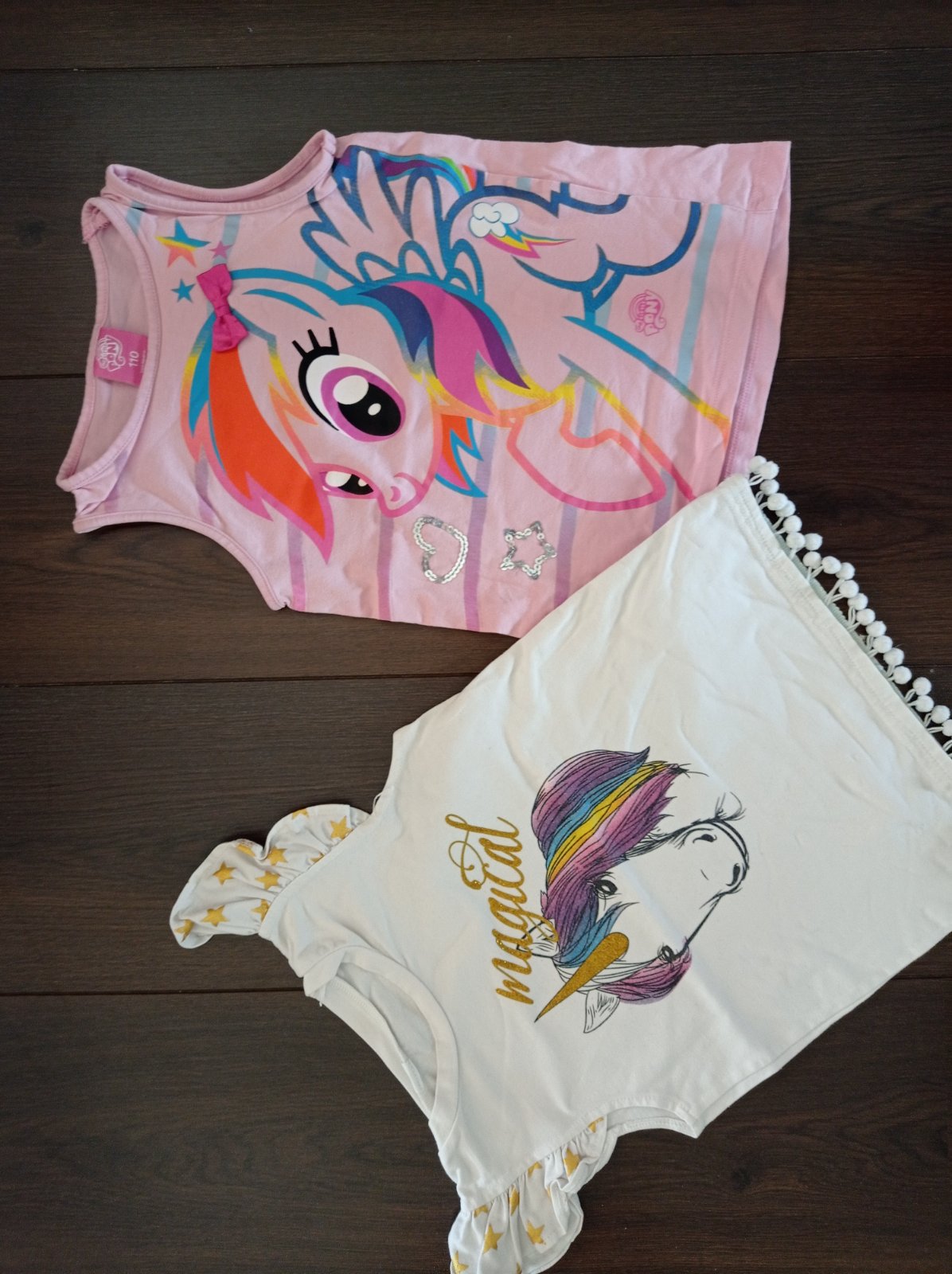 Koníkové tričká,biele nosenejsie,ružové málinko,bez poškodení..pekný stav..cena za kus 2€ spolu 3,50
