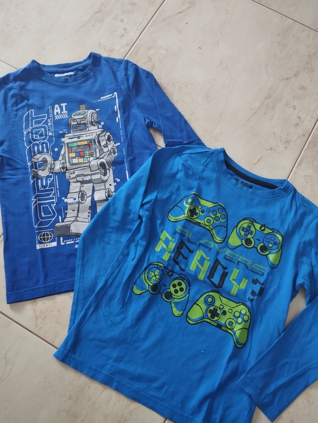 Bez poškodenia. Velkosť 7-8 rokov. Dĺžka 41cm, rukáv od ramena 46cm, šírka 35cm. Cena za 2 ks