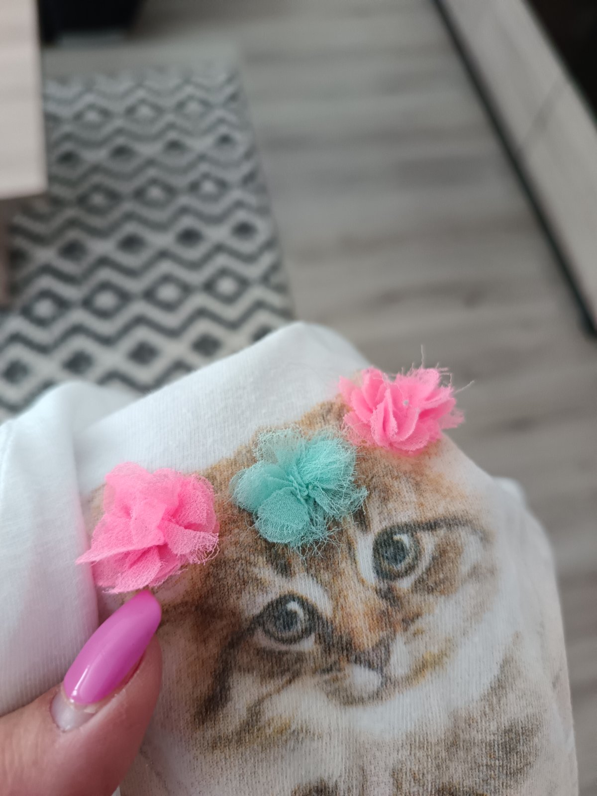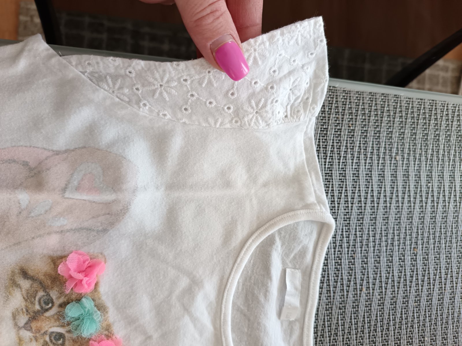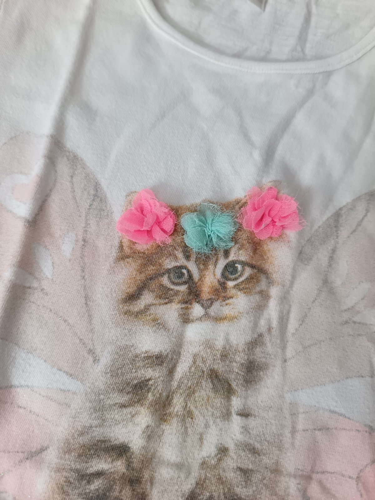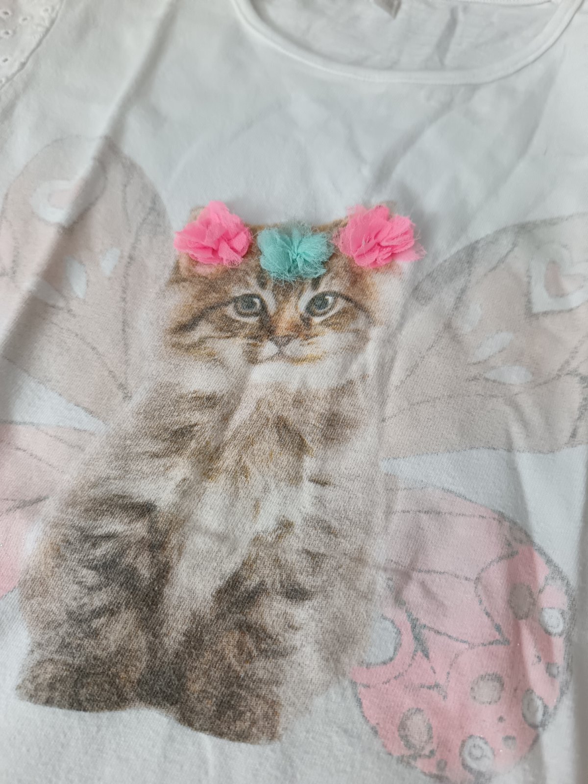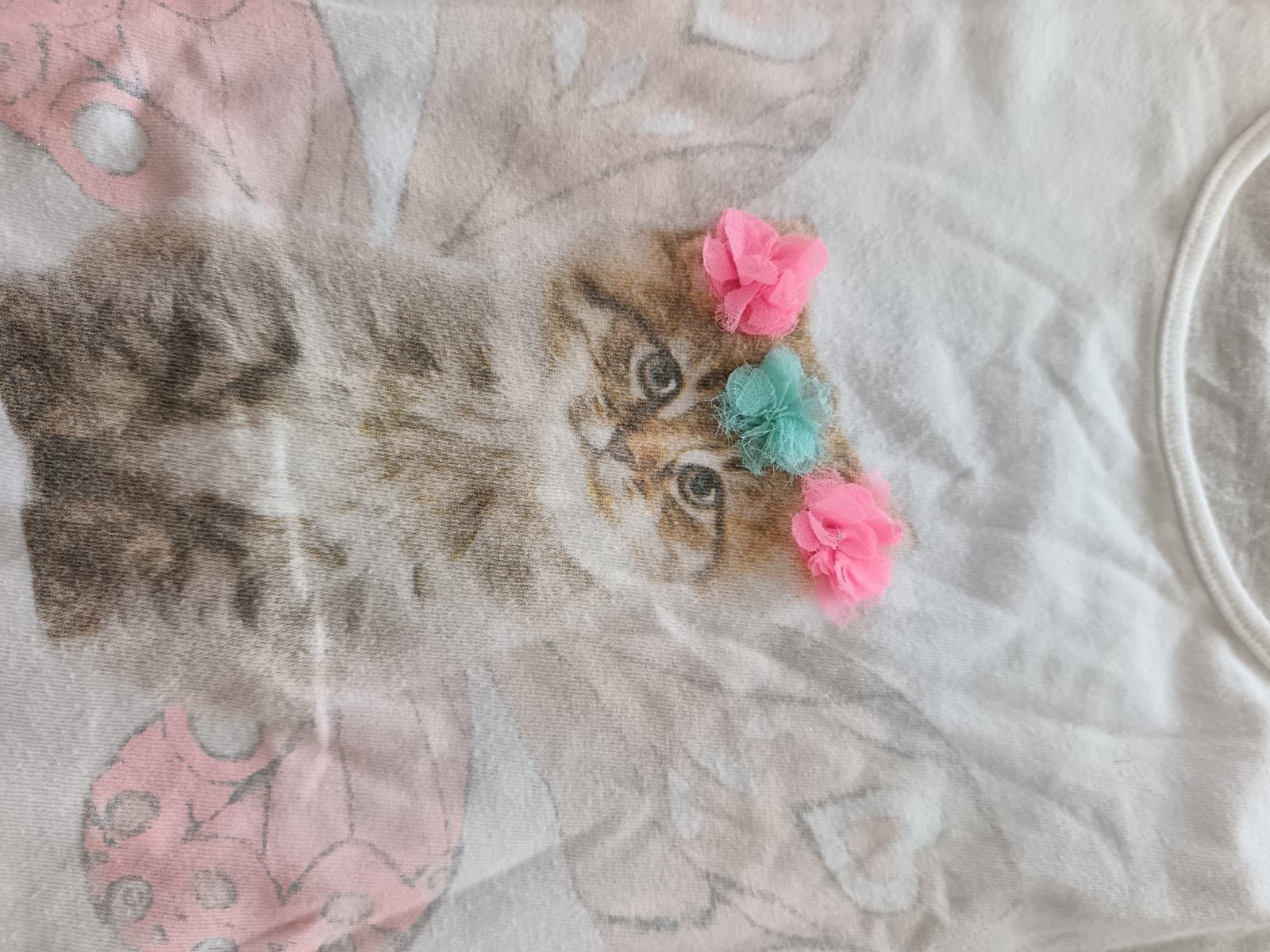 Krásne tričko s mačiatkom a kvietkami