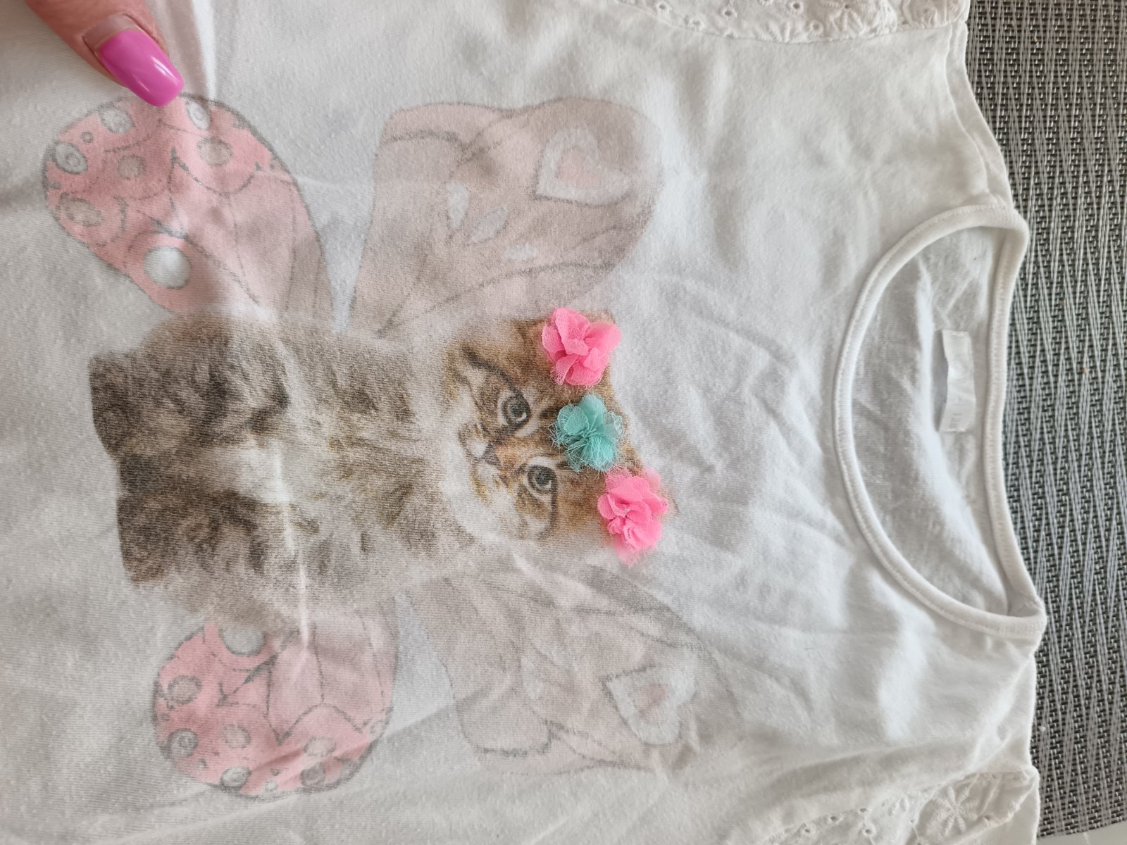Predám krásne tričko s mačiatkom a kvietkami.