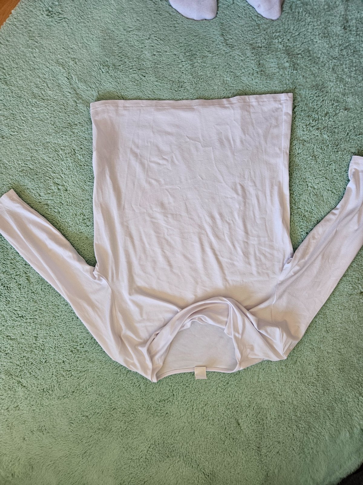 Tricko raz oblecene, vpredu ma taku vlnu. 3/4 rukav. Bavlna. Pekne ukaze