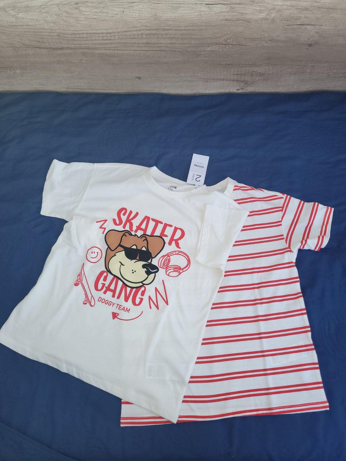 Predám nové s vysačkou 2 ks tričiek s krátkym rukávom pre chlapca. Veľkosť 134. Cena 2 eurá za 2 kusy.
