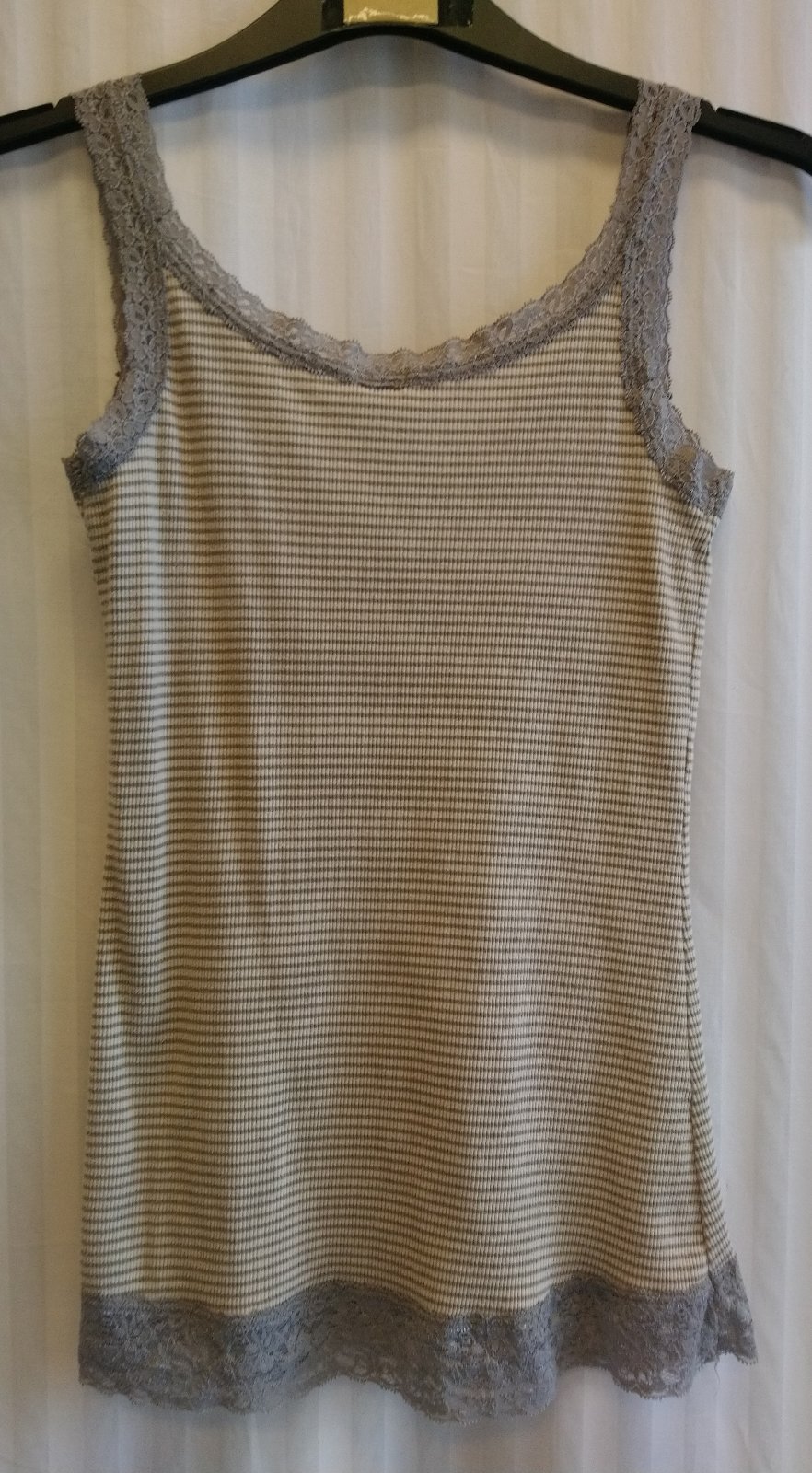 dámsky pásikavý sivo biely top,