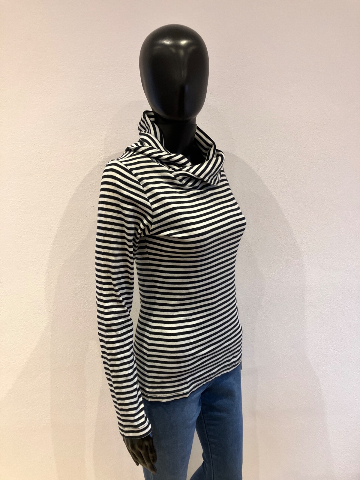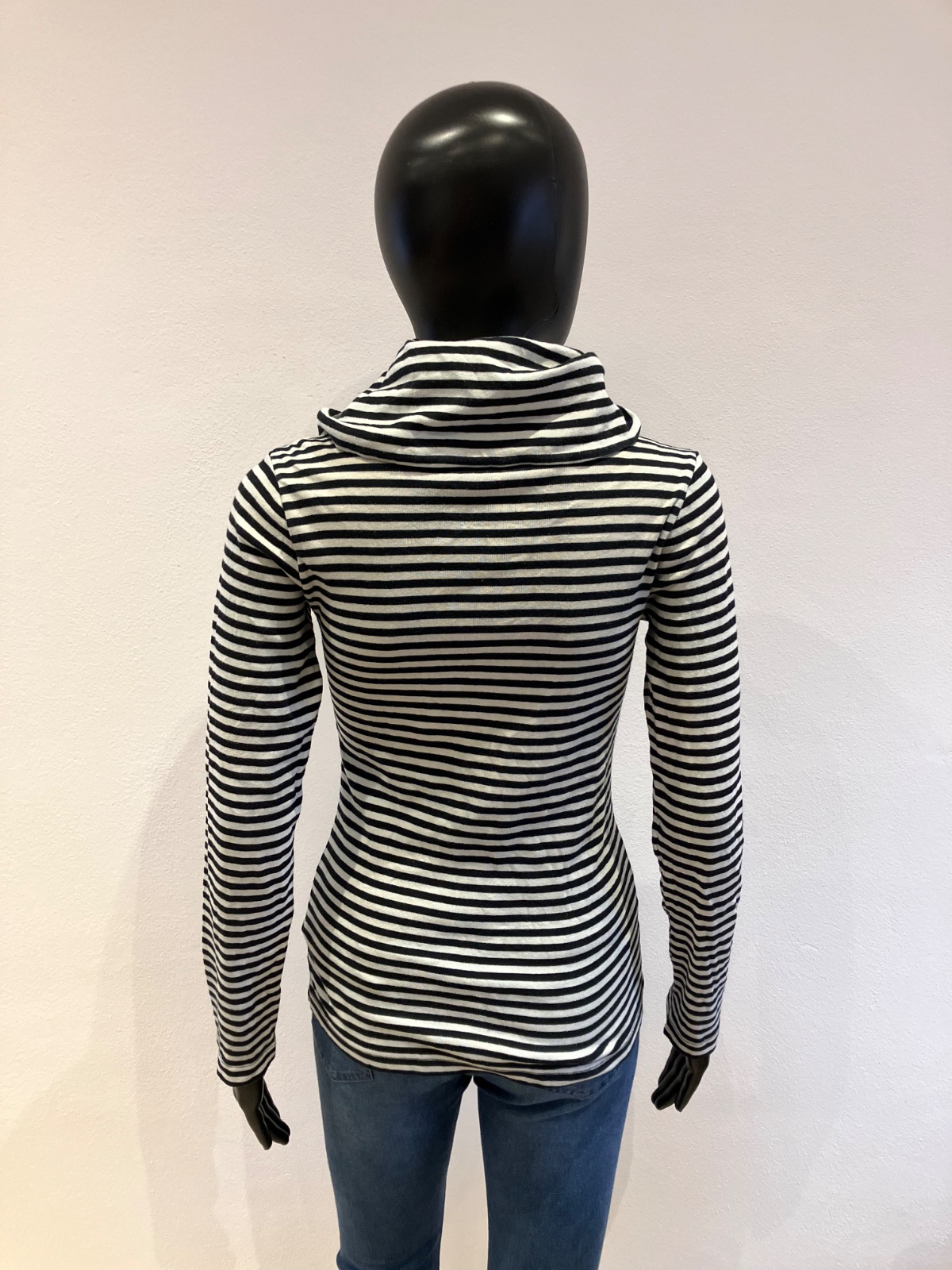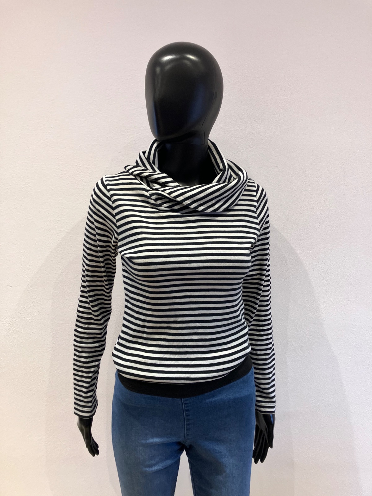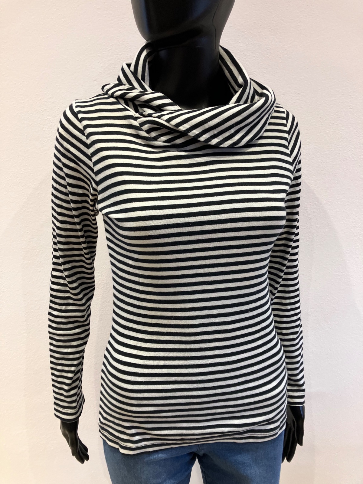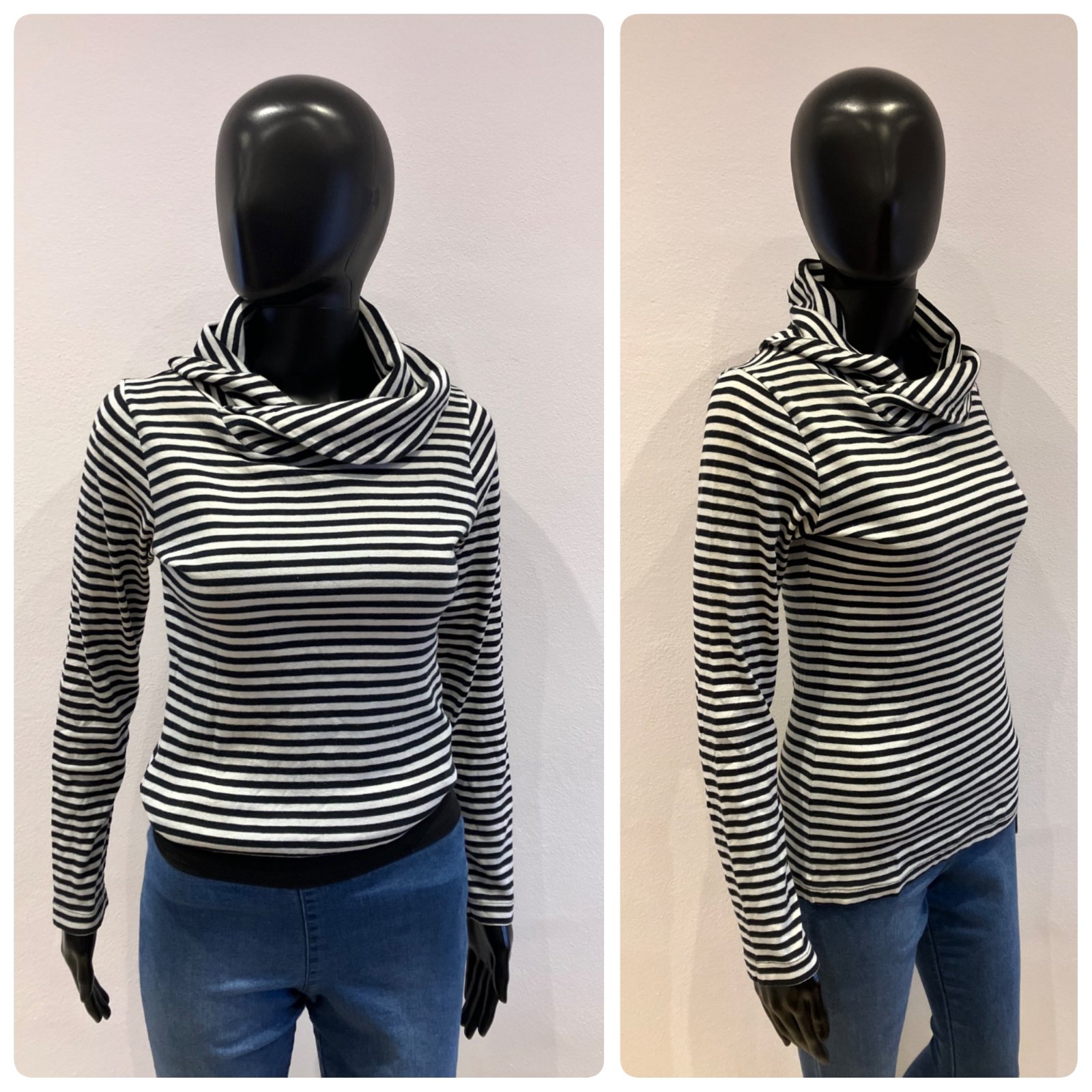 Dámske pásikavé tričko s dlhým rukávom, hrubšie, elastické, čierno-biele, materiál 100%bavlna.