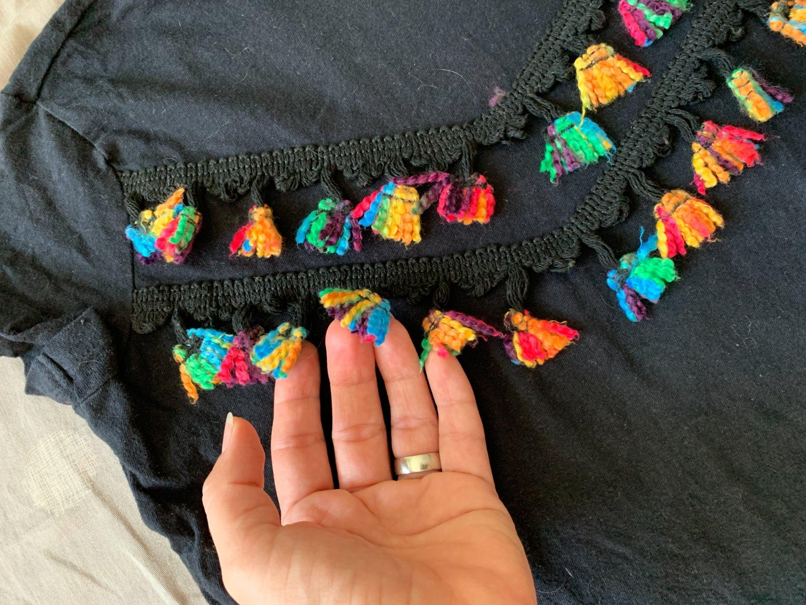 Zaujímavé tričko so strapcami. Dobrý stav bez poškodení.