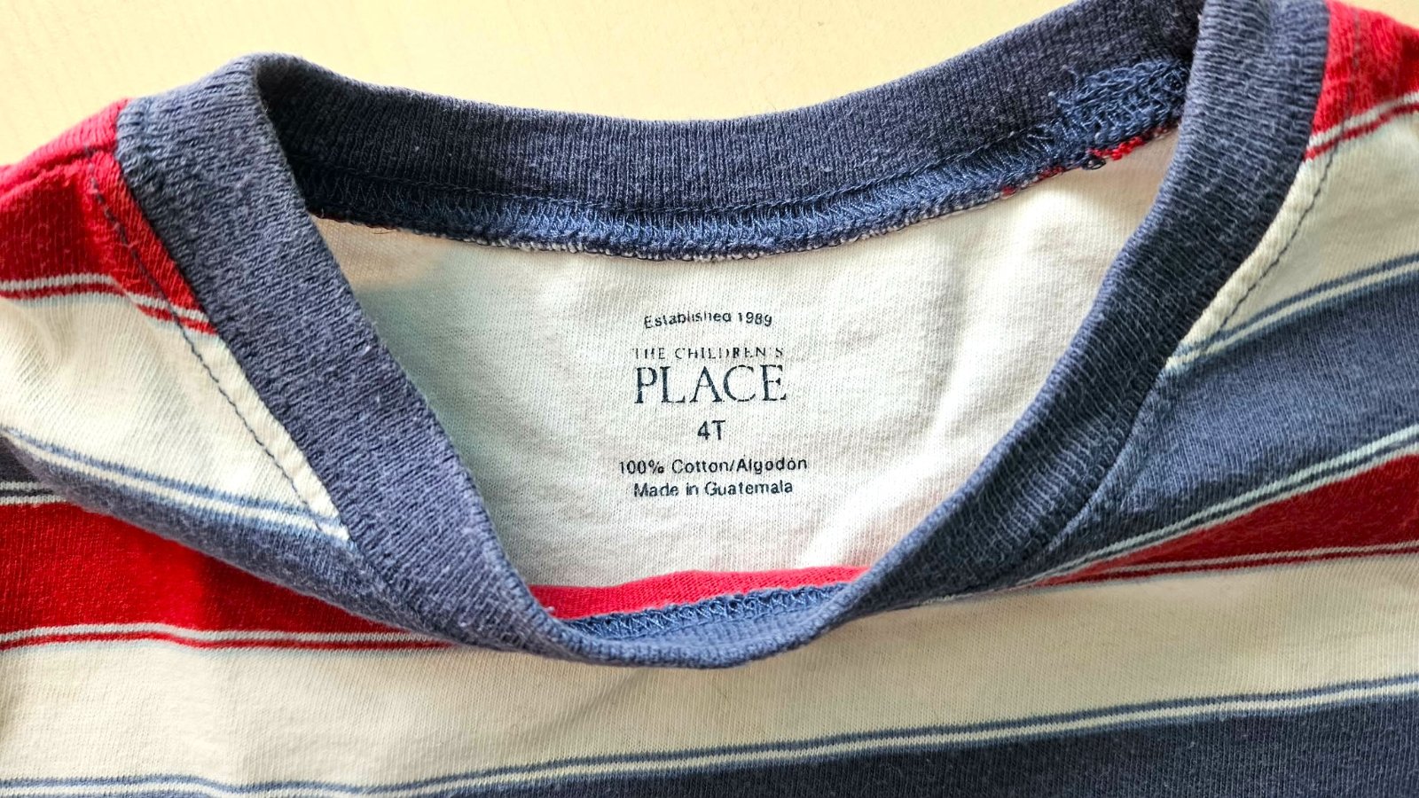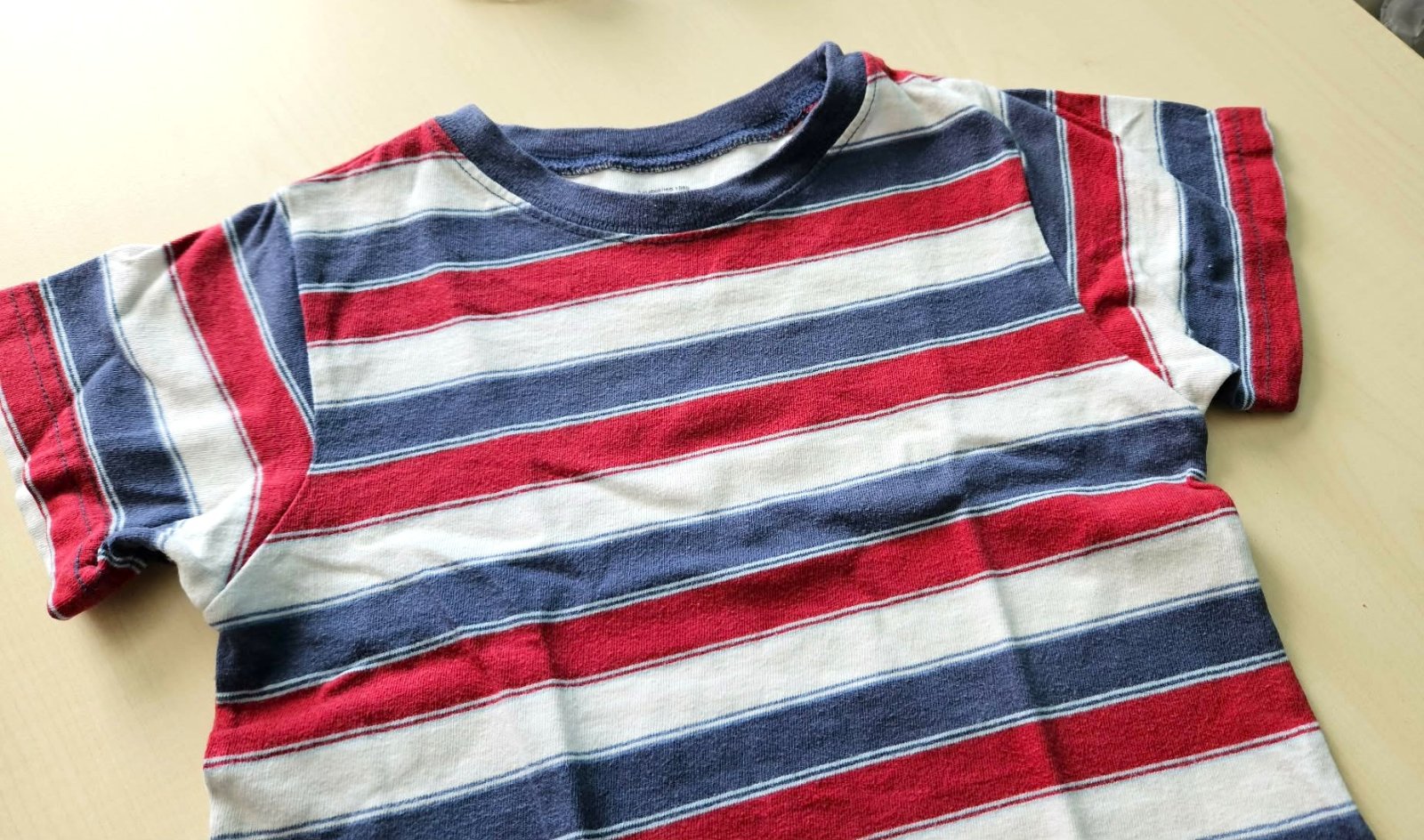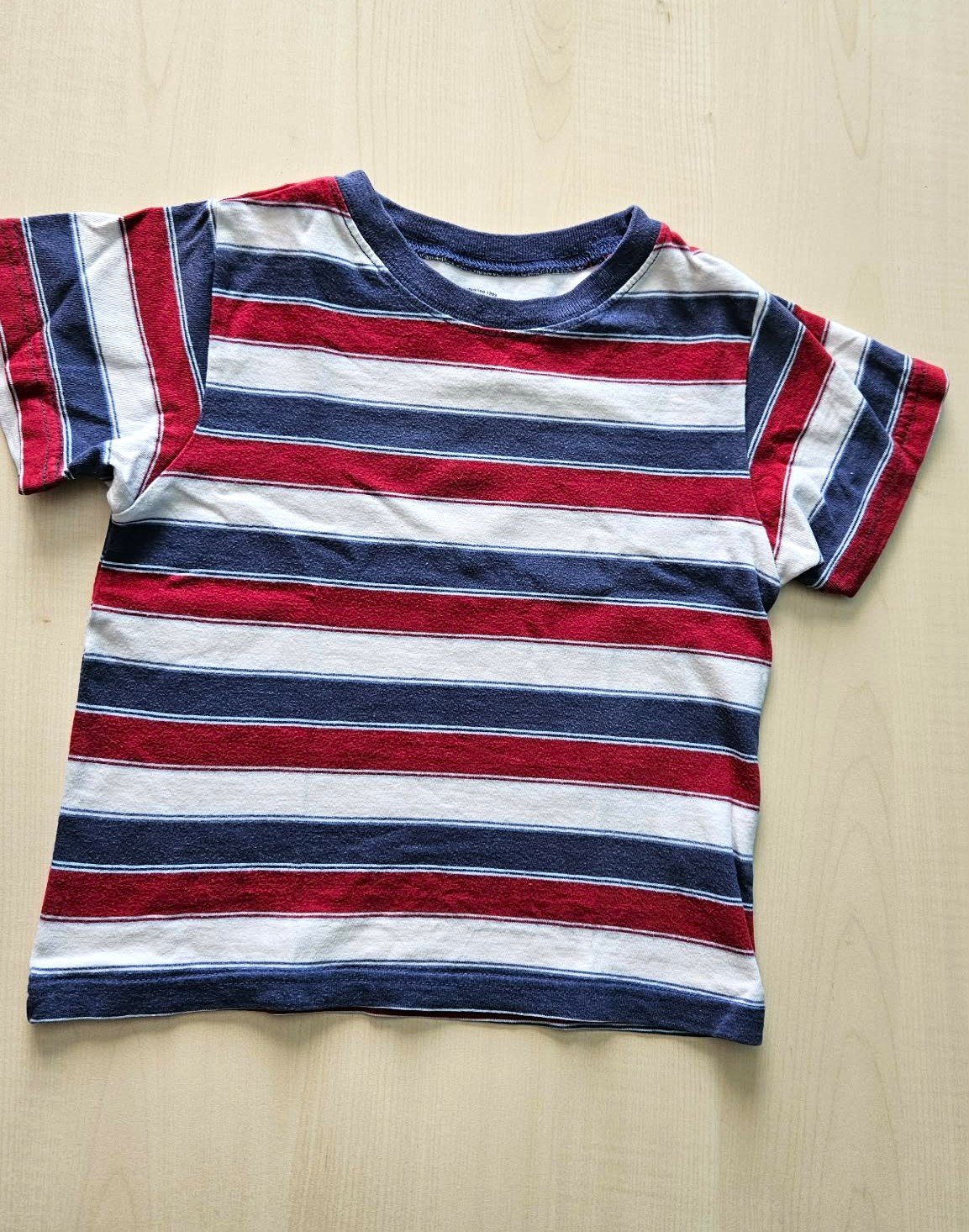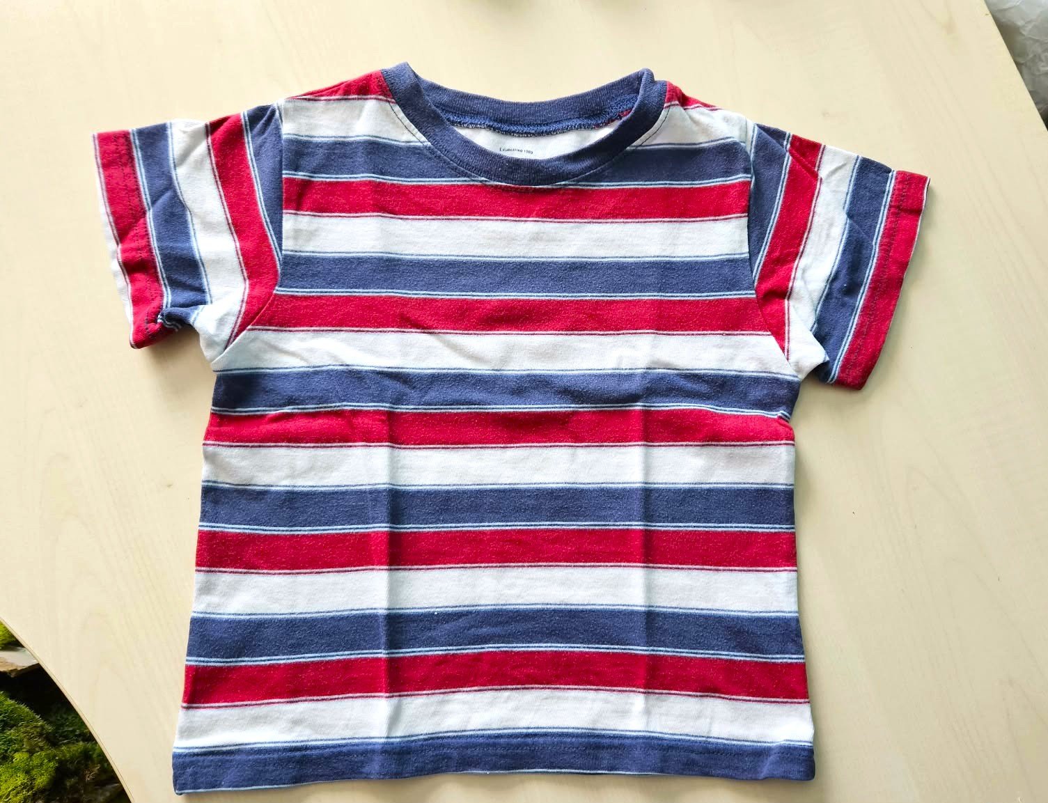 chlapčenské tričko s krátkym rukávom v námorníckej červeno-modro-bielej kombinácii, kupované v USA