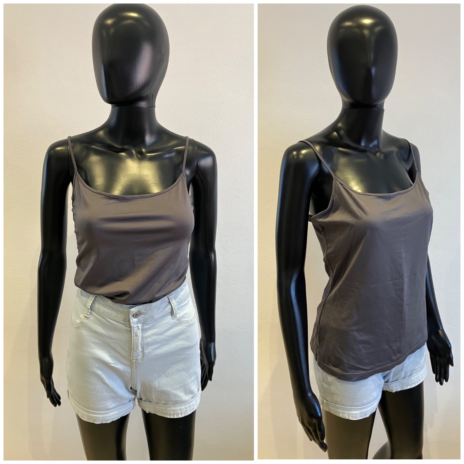 Dámsky top na tenké ramienka, lesklý, tenký, elastický, veľkosť cca M.