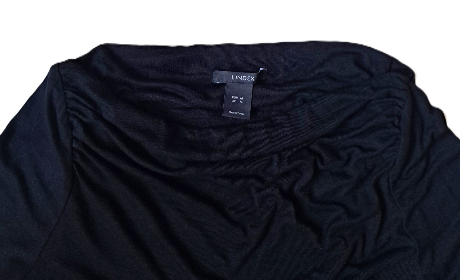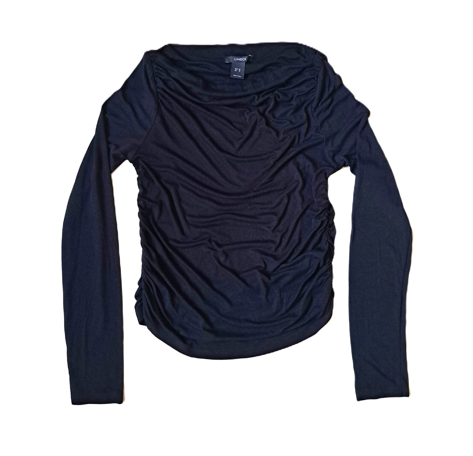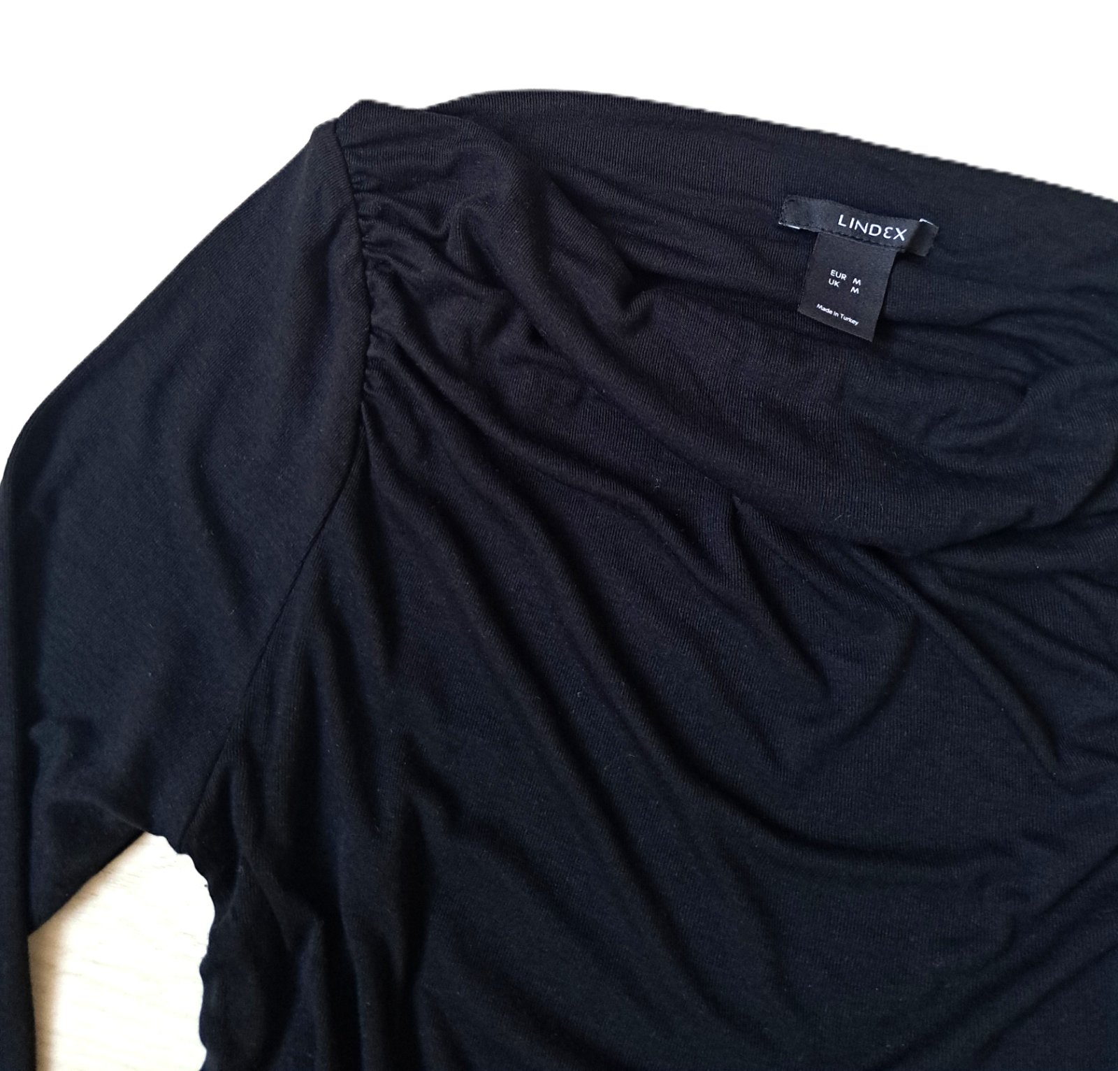Dámske tričko zn. Lindex - nosené bolo minimálne, je v super stave. Veľkosť je uvedená M, ale je veľmi elastické, takže sadne aj na L, kľudne aj väčšie L. Tričko má lodičkový výstrih, je nariasené po bokoch aj na ramenách. Materiál je veľmi jemnučký, bavlnený.