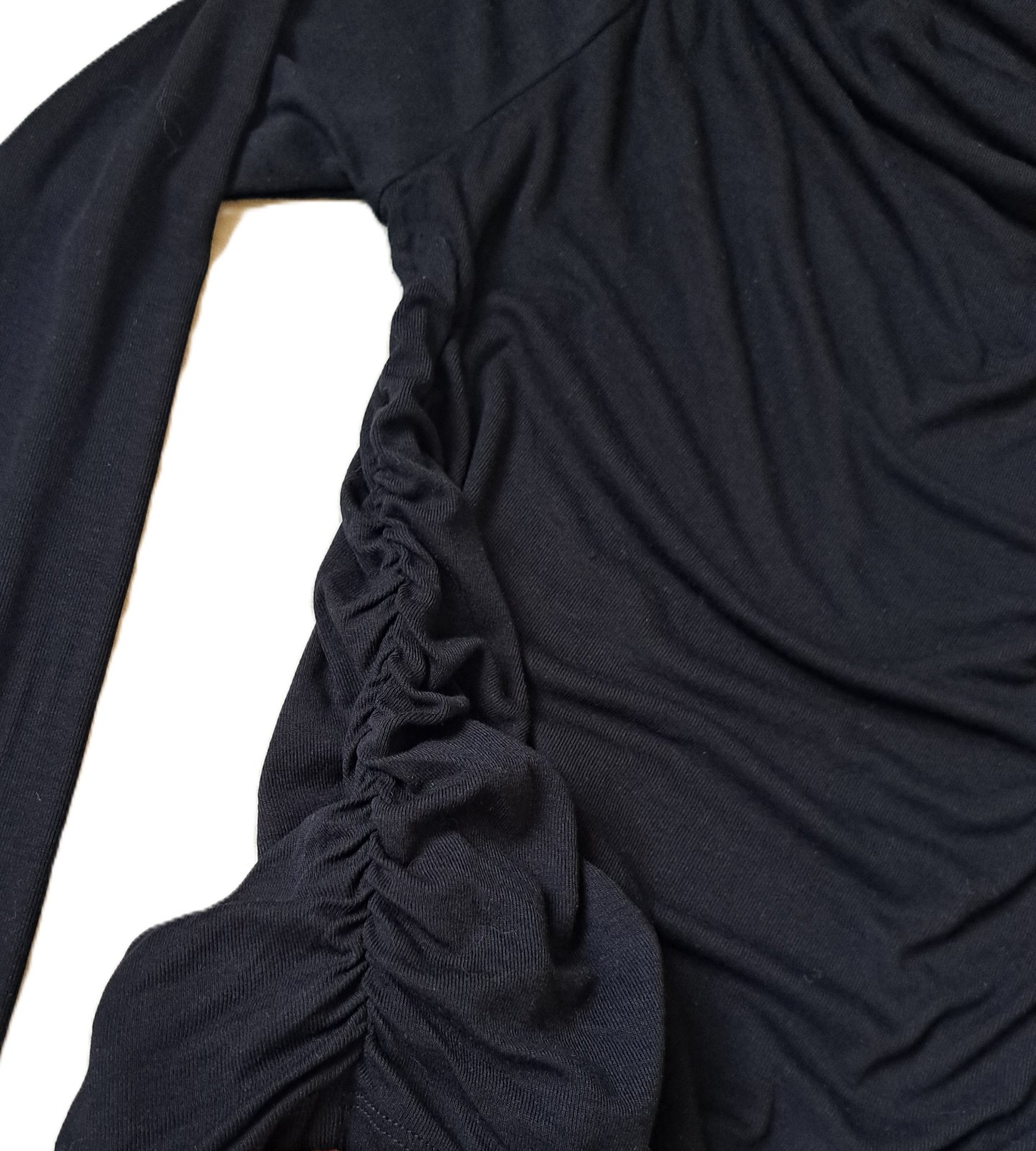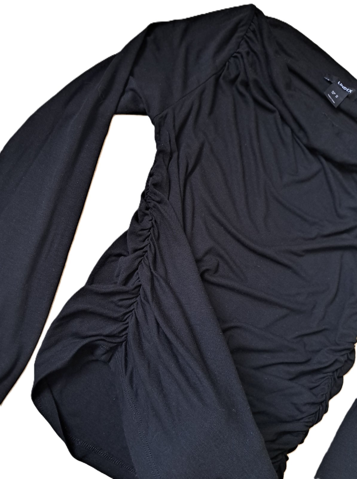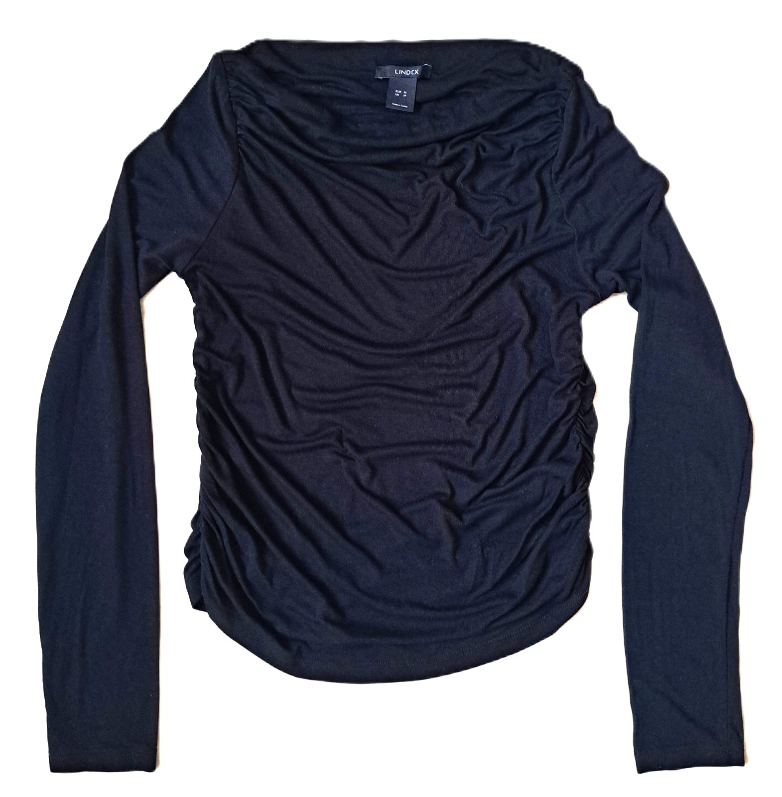 Dámske tričko zn. Lindex - nosené bolo minimálne, je v super stave. Veľkosť je uvedená M, ale je veľmi elastické, takže sadne aj na L, kľudne aj väčšie L. Tričko má lodičkový výstrih, je nariasené po bokoch aj na ramenách. Materiál je veľmi jemnučký, bavlnený.