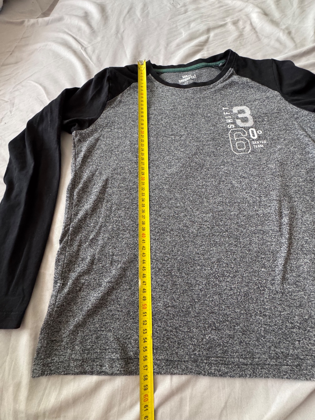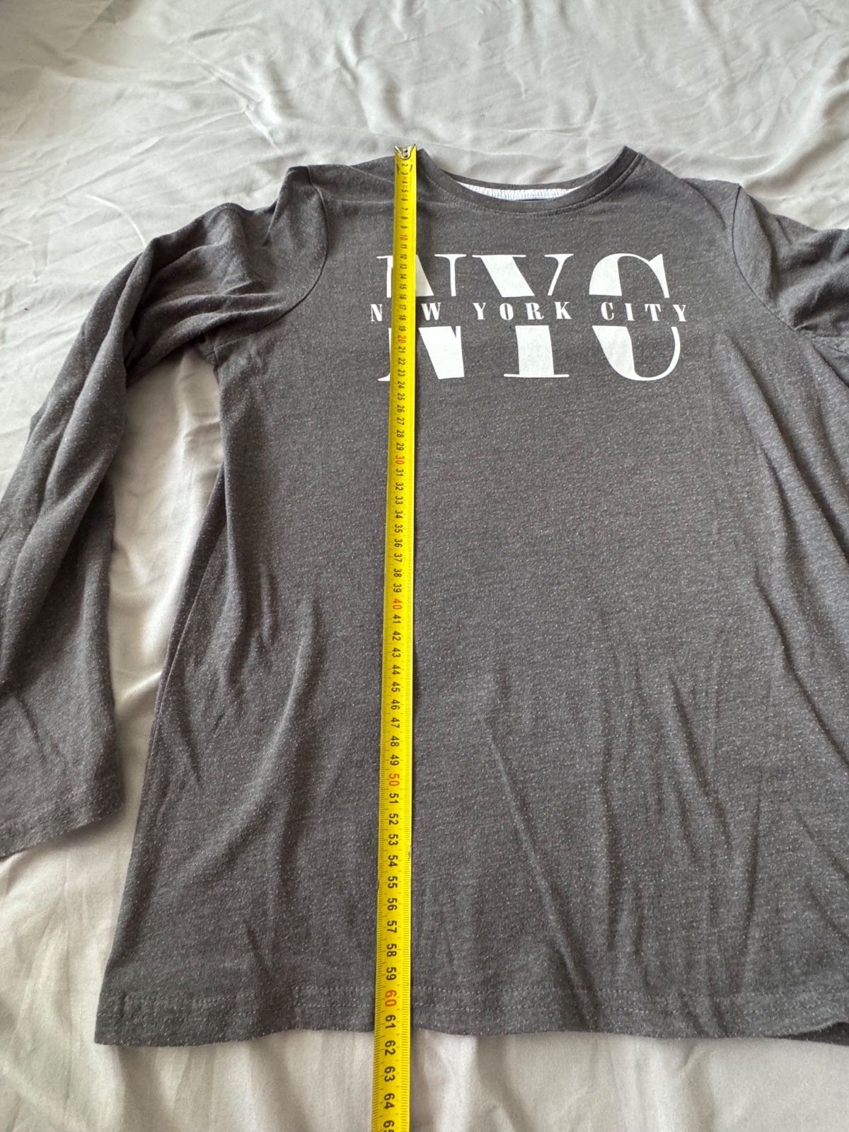 Tričko s dlhým rukávom zn. Primark, veľ. 158. Materiál 100% bavlna. Rozmery: dĺžka od ramena po spodný okraj 56 cm, šírka cez prsia 45 cm, dĺžka rukáva 56 cm.