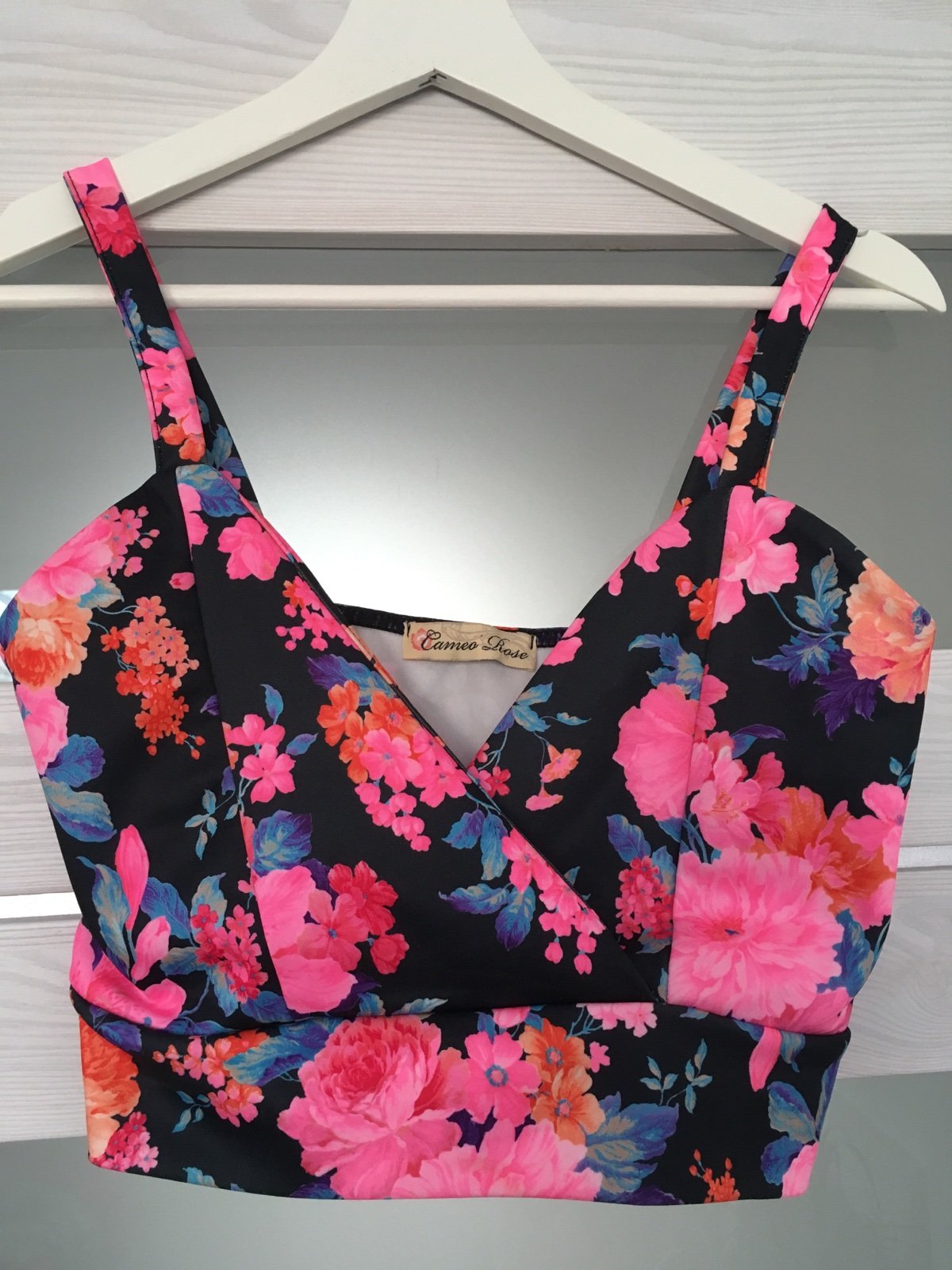 veľk. uvedená 38 ale sedí na xs-s, dĺžka 40cm, prsia 37cm v kľude, sú elastické a prekrížené, na prsiach sa prispôsobia, pás pod prsiami 33cm. Oblieka sa cez hlavu,
